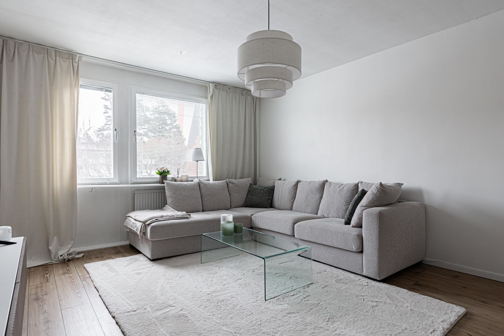 Redan i hallen möts du av en ljus och välkomnande entré med stilrena ytskikt och goda avhängningsmöjligheter. Vidare öppnar bostaden upp sig mot det rymliga vardagsrummet som erbjuder gott om plats för både soffgrupp och matplats, perfekt för såväl sociala tillställningar som lugna hemmakvällar med familj och vänner.