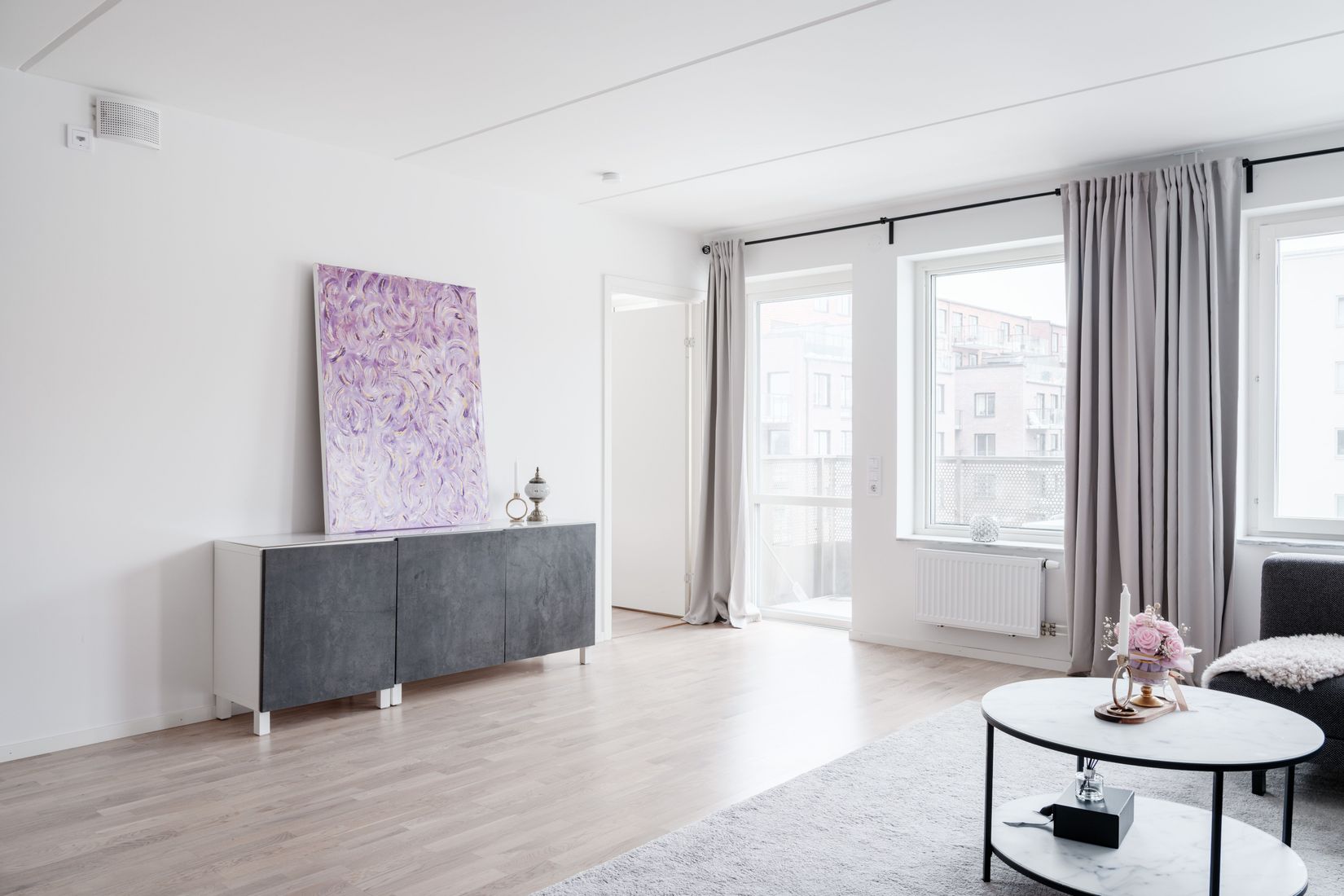 Bostaden erbjuder en öppen och social planlösning där kök och vardagsrum smälter samman och skapar en luftighet. De generösa ytorna bjuder in till både avkoppling och trevliga stunder med vänner och familj. Från vardagsrummet nås balkongen i österläge, en perfekt plats för morgonsol, frukost och lugna stunder under årets varmare månader.