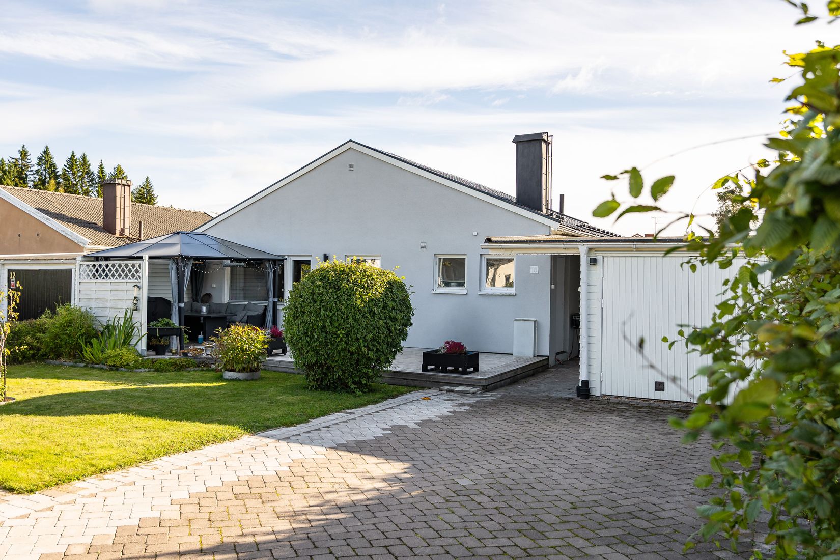 Utomhusmiljön är lika trivsam som insidan. På baksidan finns odlingslådor, växthus, bärbuskar och fruktträd – perfekt för dig som gillar att njuta av både grönska och egen skörd. På den breddade uppfarten ryms upp till fyra bilar och dessutom finns garage.