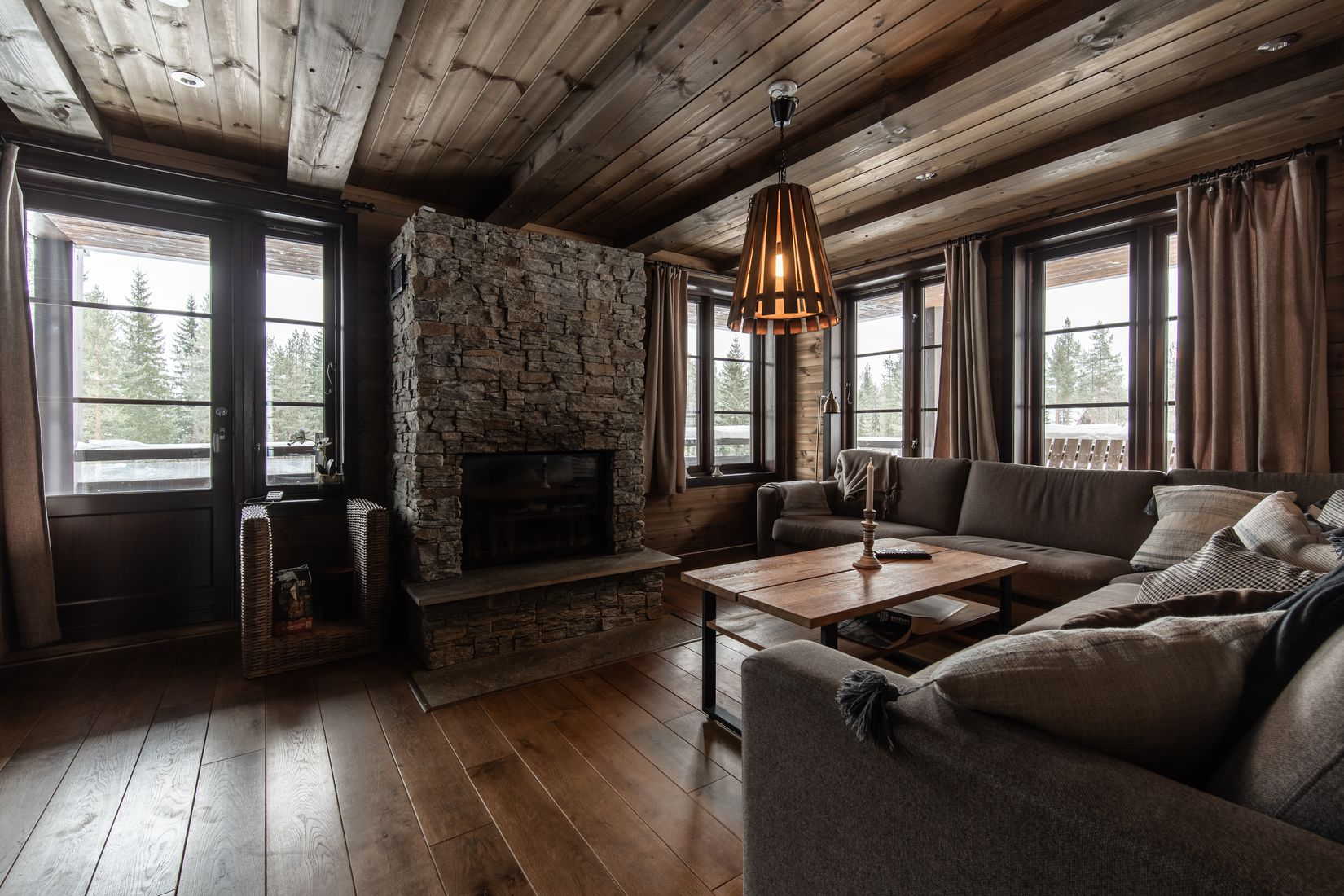 Bostaden bjuder in till en social till samvaro med öppen planlösning mellan kök, matplats och vardagsrum, där den stenklädda öppna spisen skapar både värme och fjällkänsla. Totalt finns det åtta bäddar, två badrum, bastu och en balkong som sträcker sig runt husknuten vilket ger gott om plats för både familj och gäster.