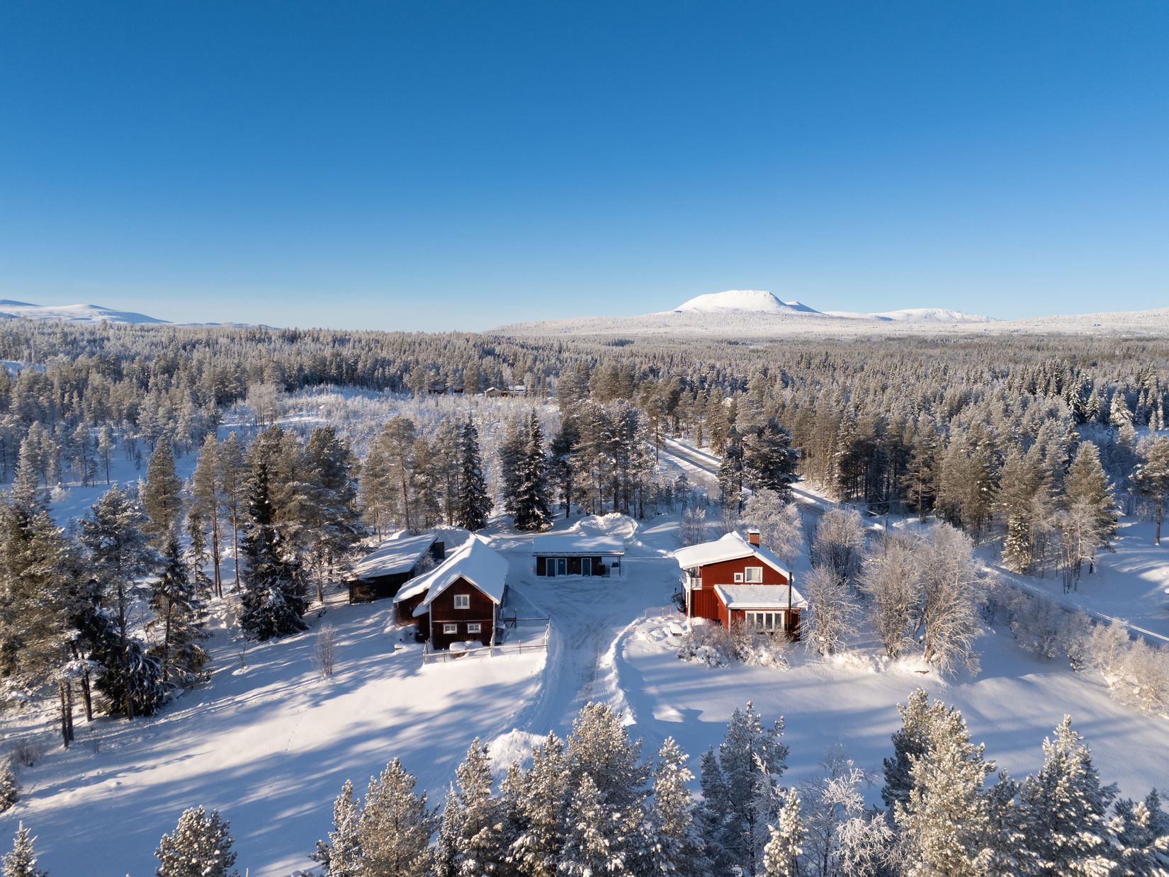 På tomten finns en lång förrådslänga, en separat förrådsbyggnad med hundgård samt en stor lada – vilket ger gott om utrymme för skotrar, verkstad, förvaring eller djurhållning.