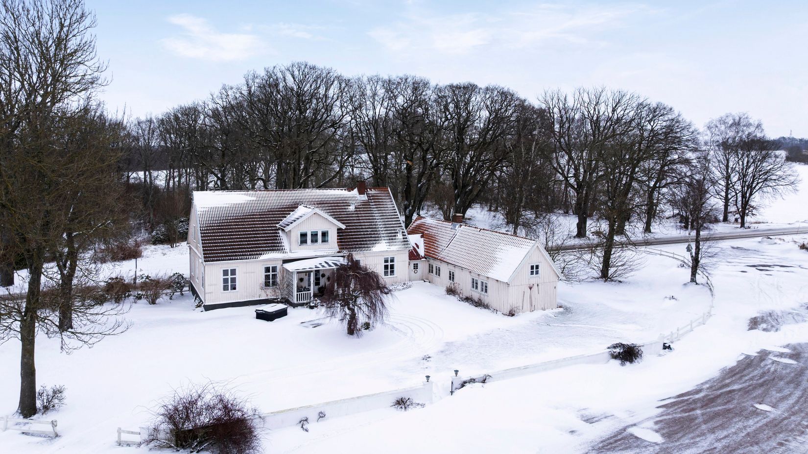 Intill Lagans ringlande vatten finns denna väl tilltagna gård som utöver den rymliga bostaden med anor från 1600-talet som står omskriven i "Gamla Laholms upplaga från 2024". Bostaden erbjuder pampiga salar och rum i fil med ca tre meter i takhöjd om ca 270kvm. Marken består av drygt 12 ha mark bestående av åker/skog som lämpar sig för såväl odling som häst/djurhållning det finns även stora ekonomibyggnader för ett flertal ändamål.