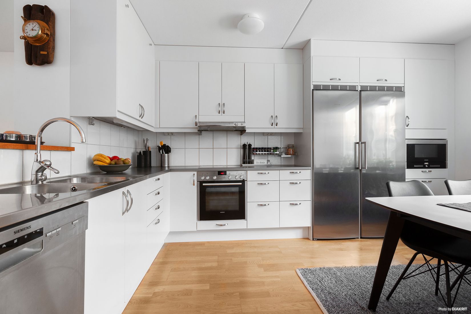 Vidare finns tre välplanerade sovrum som passar utmärkt som master bedroom, barnrum, gästrum eller hemmakontor. Bostaden har dessutom två helkaklade WC-/badrum, varav det ena är utrustat med tvättmaskin och torktumlare för extra komfort i vardagen.