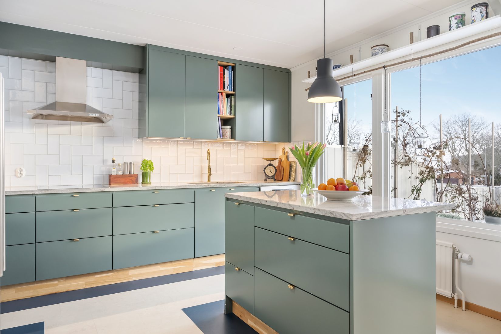 Bostaden är fördelad över två plan samt källare och erbjuder tre sovrum, ett stilrent kök med marmorskiva och köksö som blir hemmets naturliga samlingsplats samt ett rymligt vardagsrum med plats för både soffgrupp och matplats.