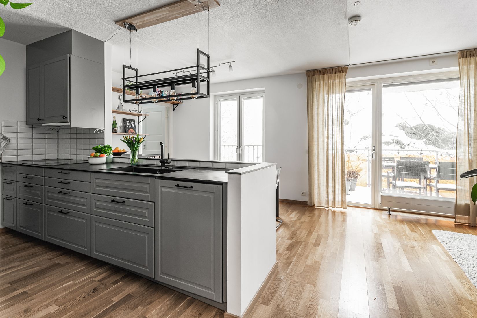 Mot lummig grönska och ett rofyllt naturparti ligger denna bostad i ett lugnt och insynsskyddat läge. Lägenheten erbjuder öppna och sociala ytor med en genomtänkt planlösning. Balkongen vetter mot det grönskande bergspartiet och är helt insynsskyddad. Ett mycket modernt kök från 2022 med gott om förvaring och stora arbetsytor. Vardagsrum och sovrum har generösa, dubbla fönster från golv till tak som kan öppnas likt franska balkonger, vilket ger ett härligt ljusinsläpp. Sovrummet har delats av för att få ett extra sovrum. I vardagsrummet har det byggts till en klädkammare. Samtliga förändringar kan återställas vid intresse. Det moderna och rymliga badrummet är utrustat med en stor belyst spegelvägg samt en praktisk tvättdel med både tvättmaskin och torktumlare. Spotlights och golvvärme bidrar till en extra känsla av lyx. Utöver tvättmöjligheten i bostaden finns även föreningens gemensamma tvättstuga.
