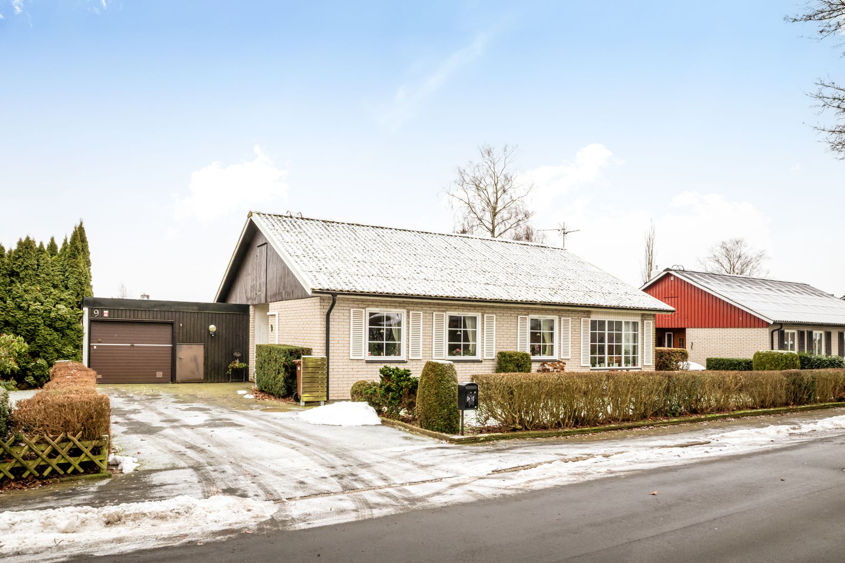 Huset erbjuder 105 välplanerade kvadratmeter boyta och ytterligare cirka 37 kvadratmeter biarea med garage och gott om förvaringsutrymmen. Planlösningen är klassiskt funktionell – allt på ett plan – med tydlig separation mellan sociala ytor och sovdel.