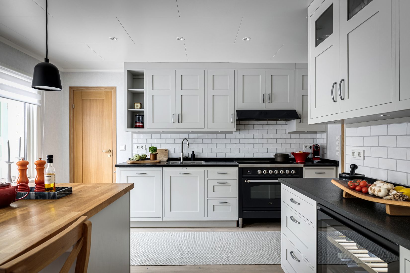 Redan vid entrén möts ni av en rymlig hall och ett välkomnande intryck. Här blickar ni fram mot den centralt placerade öppna spisen som sprider värme och trivsam karaktär för bostaden. Till höger öppnar hemmet upp till det exklusiva och smakfulla köket från Lidhults – ett tidlöst, kvalitativt och elegant kök som blir till en självklar mittpunkt och samlingsplats för familj och vänner. Här finns en generös köksö placerad framför stora fönsterpartier med vackert ljusinsläpp som bjuder in till såväl vardagens måltider som festligare stunder. Den gedigna 90 cm breda spisen från ILVE samt spisfläkt från Fjäråskupan inspirerar till och förverkligar många kvalitetsmedvetna matälskares drömmar. Köket är genomtänkt och fullt utrustat med kyl, frys och diskmaskin från Miele samt vinkyl och upplyst vitrinskåp och skafferi med platsbyggd förvaring och gott om arbetsytor som skapar funktion och binder samman familjens önskemål.