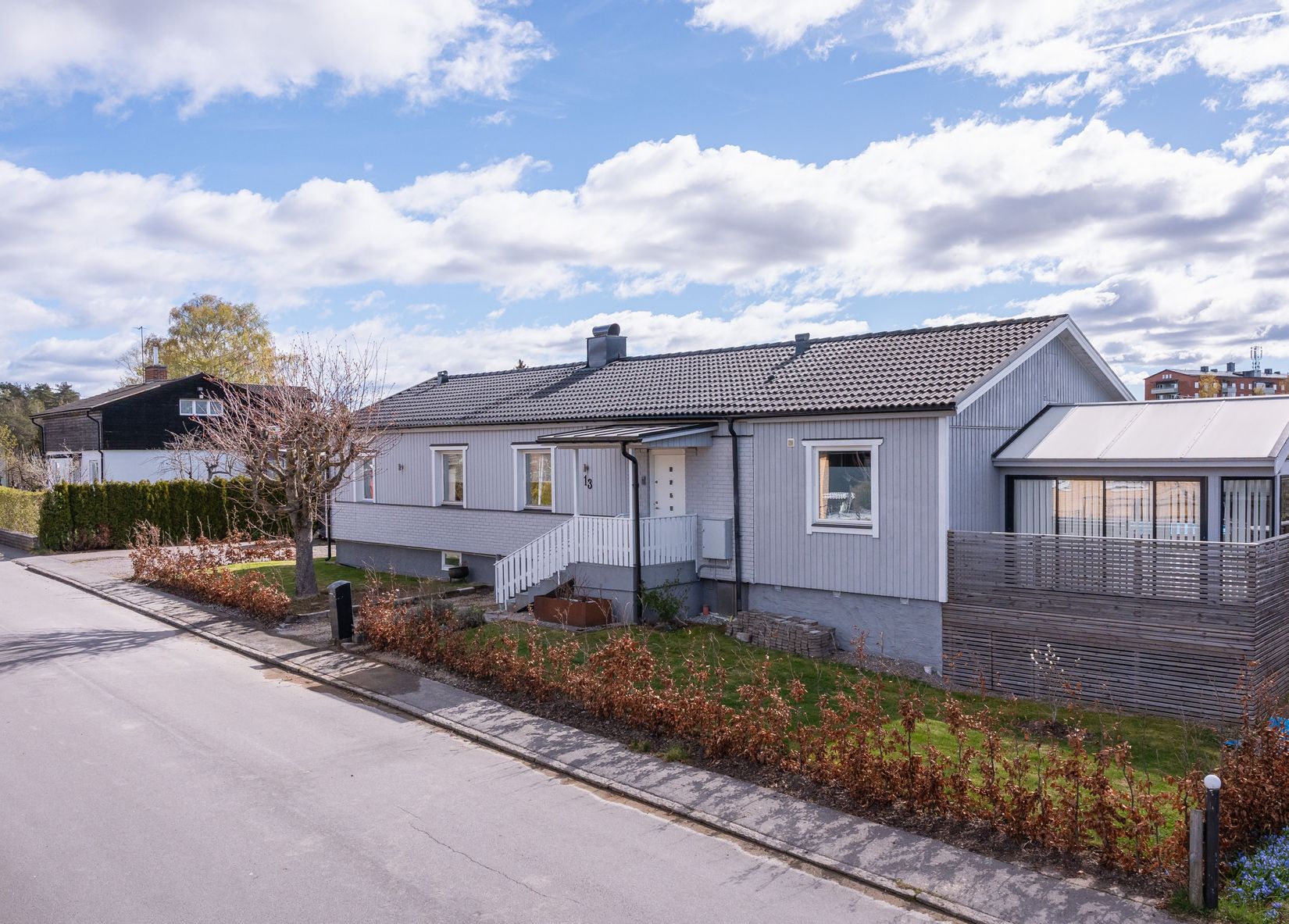 Välkommen till Heleneborgsgatan i omtyckta Hallberga, där denna rymliga enplansvilla med källare erbjuder ett bekvämt och stilfullt boende.