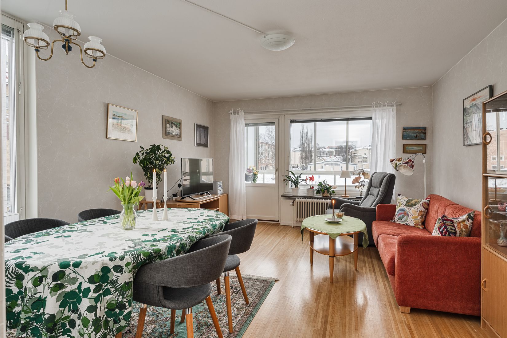 Lägenheten är på ca 58 kvm och månadsavgiften är 4 394 kr och då ingår bland annat värme, vatten, kabel-tv och bredband med 250/50 Mbit. Föreningen har flera fina gemensamma utrymmen såsom övernattningsrum, hobbyrum, bastu med relax och dusch, enklare gym samt tvättstuga med torkrum.