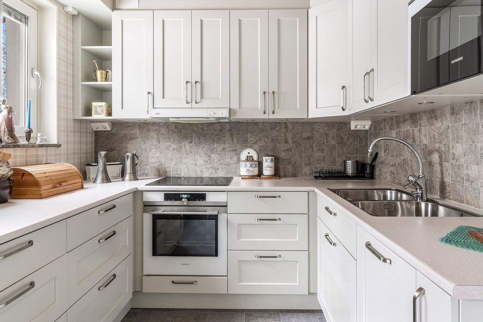 Bostaden erbjuder ett renoverat kök i fint skick, där smakfulla materialval möter goda arbetsytor och förvaring. Här finns gott om plats för både vardagsmatlagning och sociala stunder. Det ljusa och luftiga vardagsrummet förlängs av en inglasad balkong som blir ett extra rum stora delar av året – perfekt för morgonkaffet, middagar eller en lugn stund med en bok.