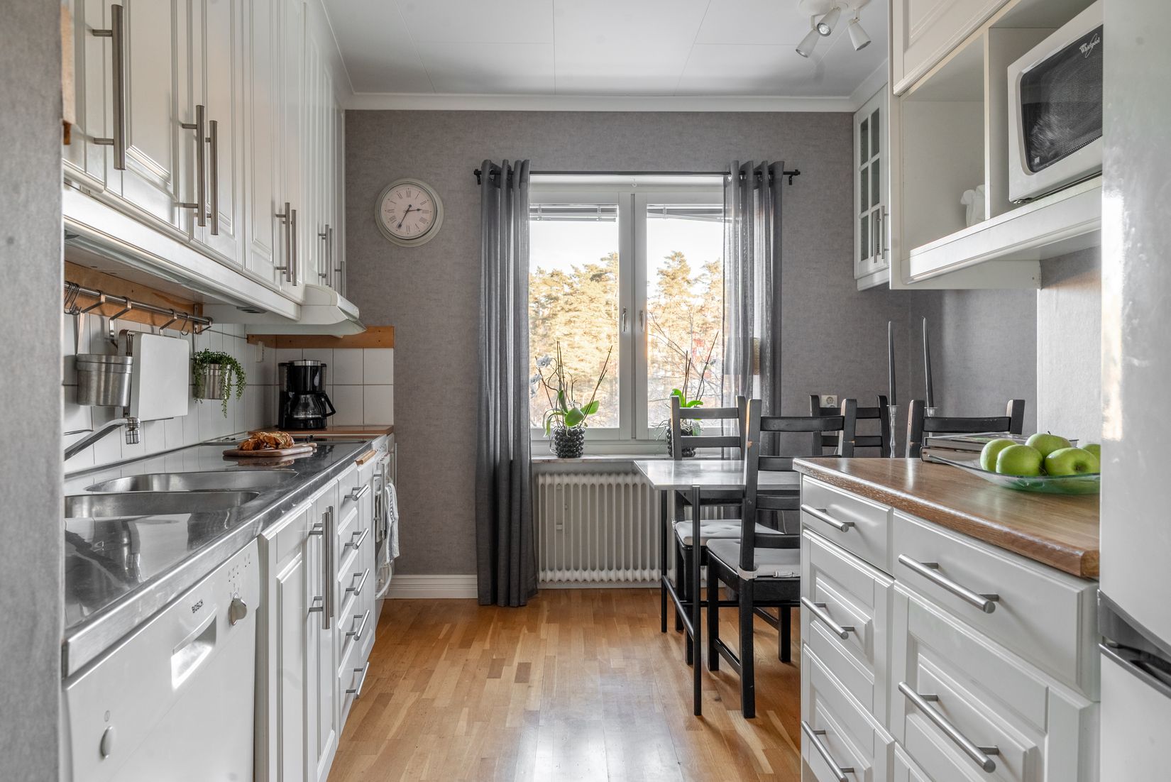 Här bor du bekvämt med hiss från markplan, vilket gör bostaden lättillgänglig för alla åldrar. Lägenheten erbjuder generösa sällskapsytor och en genomtänkt planlösning som passar både familjen och dig som vill ha gott om utrymme. Det stilrena köket är både praktiskt och inbjudande, med goda arbetsytor och plats för matbord. Bostaden har genomgående fina ytskikt som skapar en modern känsla. Det helkaklade badrummet är smakfullt renoverat i närtid och utrustat med tvättmaskin - en bekvämlighet som förenklar vardagen. Med tre sovrum ger bostaden plats för hela familjen. Bostaden erbjuder två balkonger, en från det största sovrummet och en från vardagsrummet.