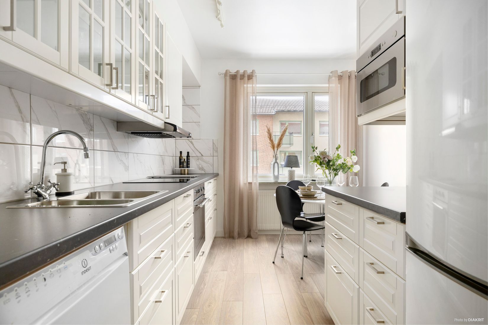 Bostaden har renoverats med nytt fullutrustat kök (-21) och genomgående fräscha ytskikt i ljusa och neutrala kulörer. Bostadens hjärta är den härliga inglasade balkongen med öppningsbara glaspartier, en plats att njuta av många fina stunder under stora delar av året. Goda förvaringsmöjligheter erbjuds genom praktisk klädkammare i hallen samt garderober i sovrummet, liksom eget vinds- och matkällarförråd.