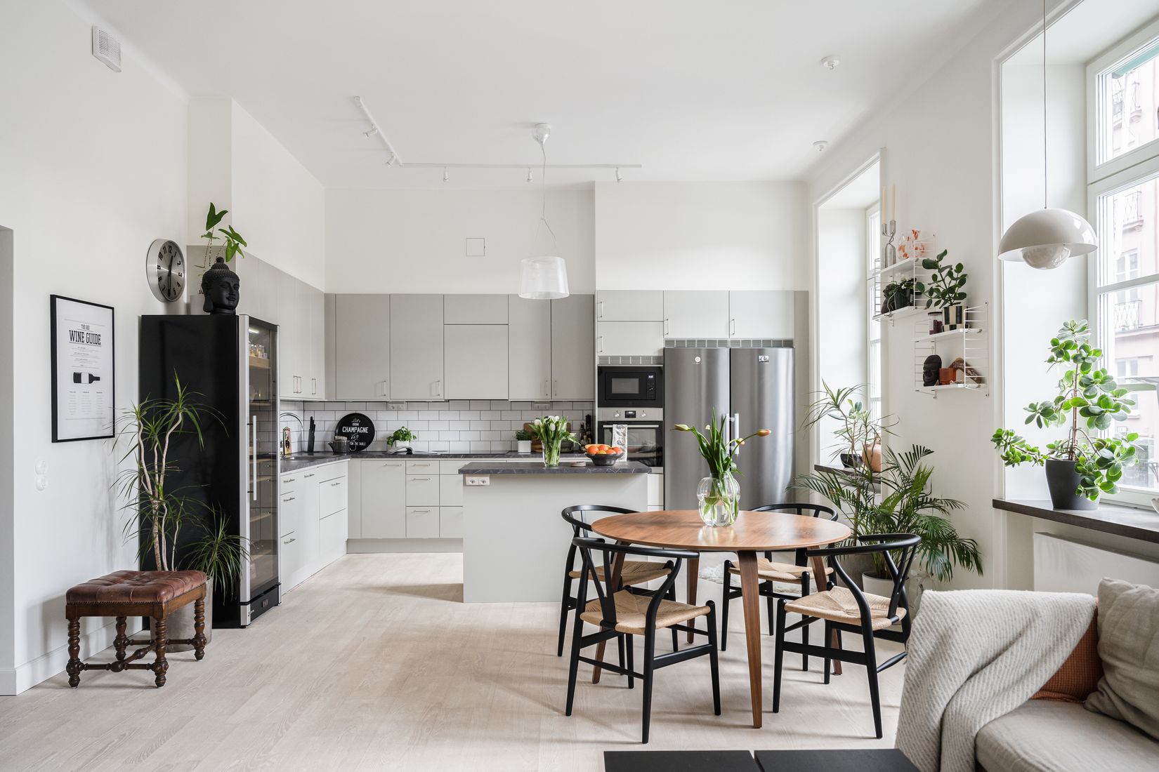 Planlösningen är social och genomtänkt med kök och vardagsrum i öppen disposition – en perfekt yta för både vardagsliv och middagar med vänner. Sovrummet är rymligt och rofyllt, med fransk balkong mot den lugna innergården. Det stilrena badrummet är utrustat med både tvättmaskin och torktumlare – en bekvämlighet som sätter guldkant på vardagen. För den som önskar ytterligare ett sovrum finns möjlighet att enkelt skapa detta genom att dela av en del av vardagsrummet.