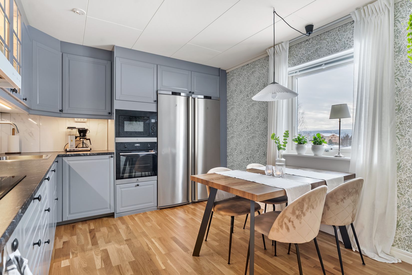 Bostaden har smakfullt renoverats med nytt kök, badrum och genomgående fina ytskikt.