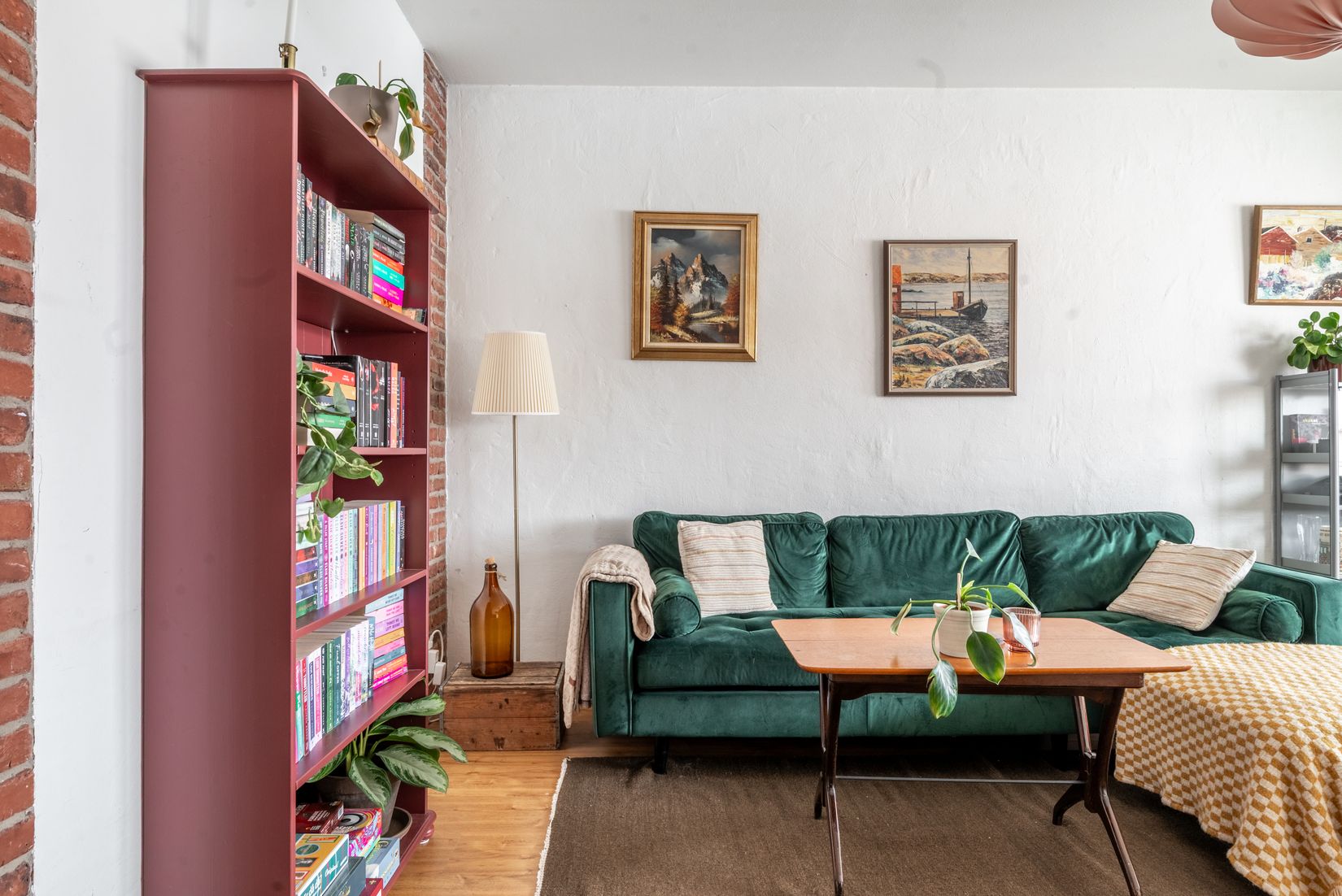 När du kliver in genom dörren blir du direkt nyfiken på lägenhetens alla detaljer och material som den bjuder på. En stor hall som är lägenhetens hjärta välkomnar dig med sin fulla karaktär. Härifrån når man sedan köket och kontoret/mysrummet, med sin inbjudande kulör och varma atmosfär blir detta direkt ett rum att trivas i. Köket i sig är fullutrustat med nyare vitvaror och gott om plats för all världens matlagning.