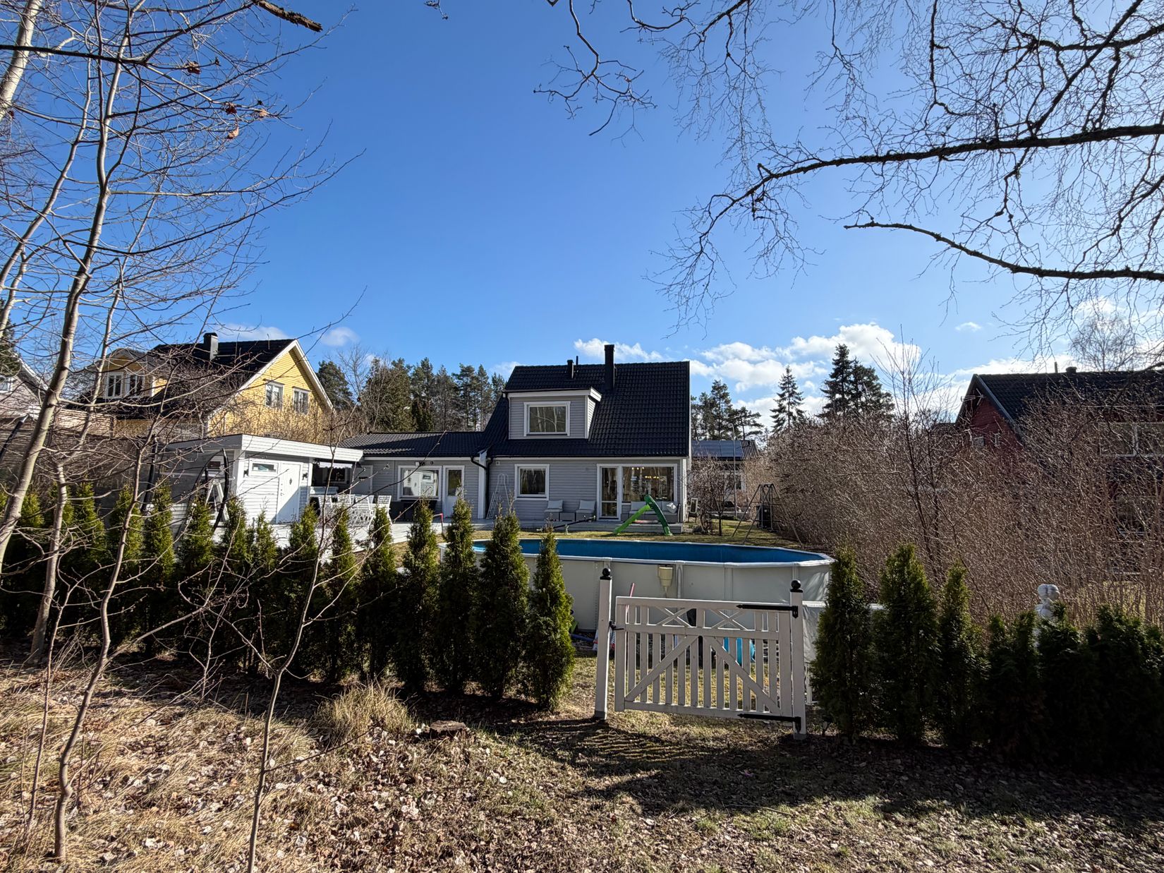 Nuvarande ägare har bott sedan 2018 och har verkligen stormtrivts i området och huset. De betonar den trevliga granngemenskapen och har i alla år värdesatt de hjälpsamma grannarna och lugna läget utan genomfartstrafik utanför huset. På entréplan finns hall, stort kök med påkostad maskinpark och rejäl köksö med stenskiva. Maskinella utrustningen i köket är slående: två diskmaskiner, två ugnar, två skafferier, två integrerade kyl/frys, spishäll, en inbyggnadsmicro, en kaffemaskin och en integrerad kyl i köksön. Stor matplats i anslutning, vardagsrum i öppen planlösning mot kök med eldstad och utgång till den trädäcksförsedd altan på baksidan. På detta våningsplan finns 2 sovrum på varsin sida om trappan. Ett helkaklat badrum med bubbelbadkar och bastu samt tvättstuga med ny tvättmaskin och torktumlare.