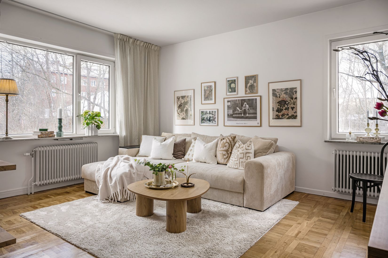Välplanerad lägenhet i Hökmossen med genomgående ljusa ytor, parkettgolv och ett fint ljusinsläpp från stora fönster. Planlösningen är enkel att möblera och rummen hänger ihop på ett naturligt sätt.