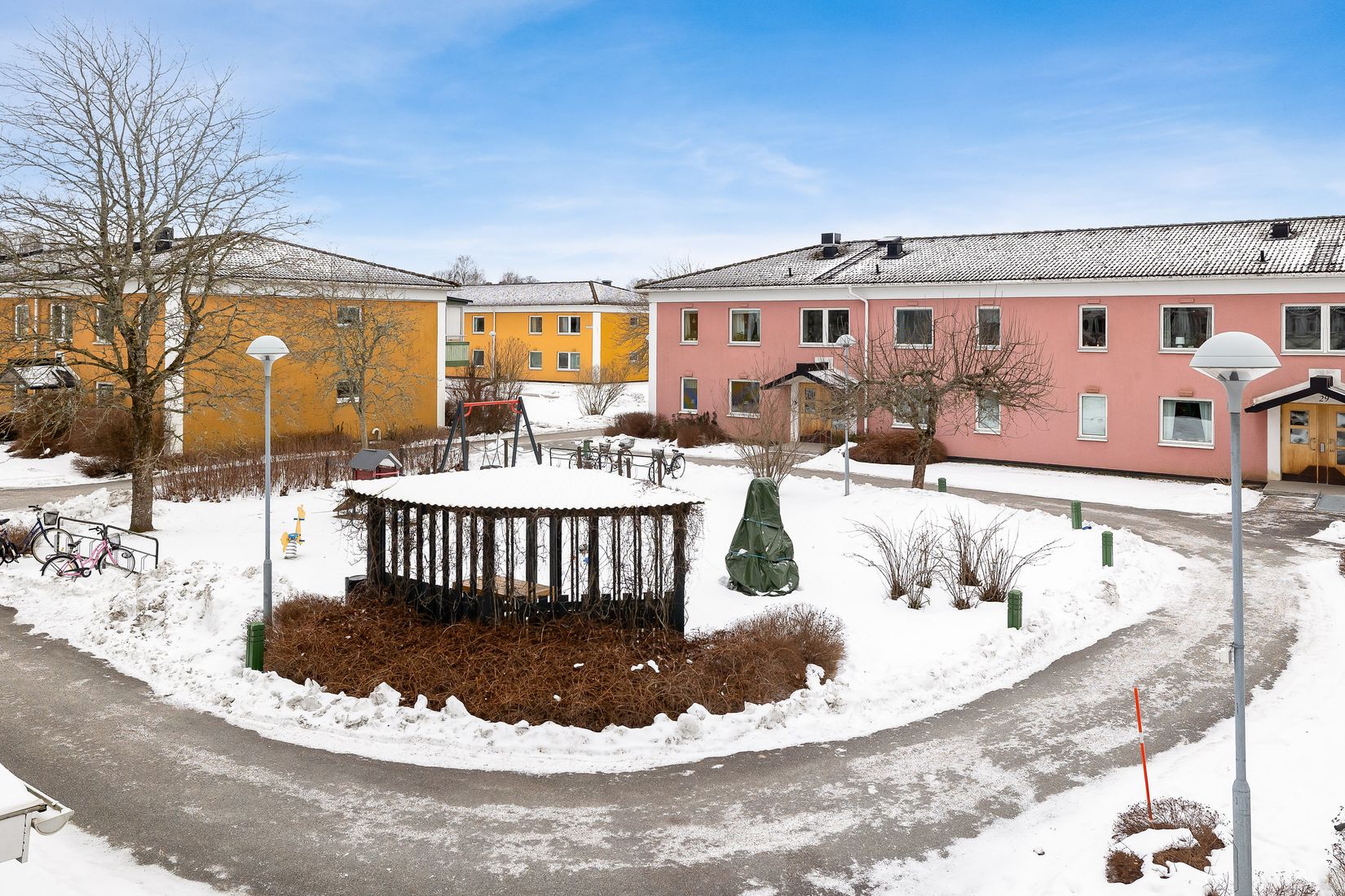 Sovrummet är rofyllt med bra förvaringslösningar. Det totalrenoverade badrummet är utrustat med egen tvättmaskin för extra bekvämlighet. Det luftiga vardagsrummet ger gott om plats för både soffgrupp och matsalsdel och skapar en trivsam yta för umgänge.