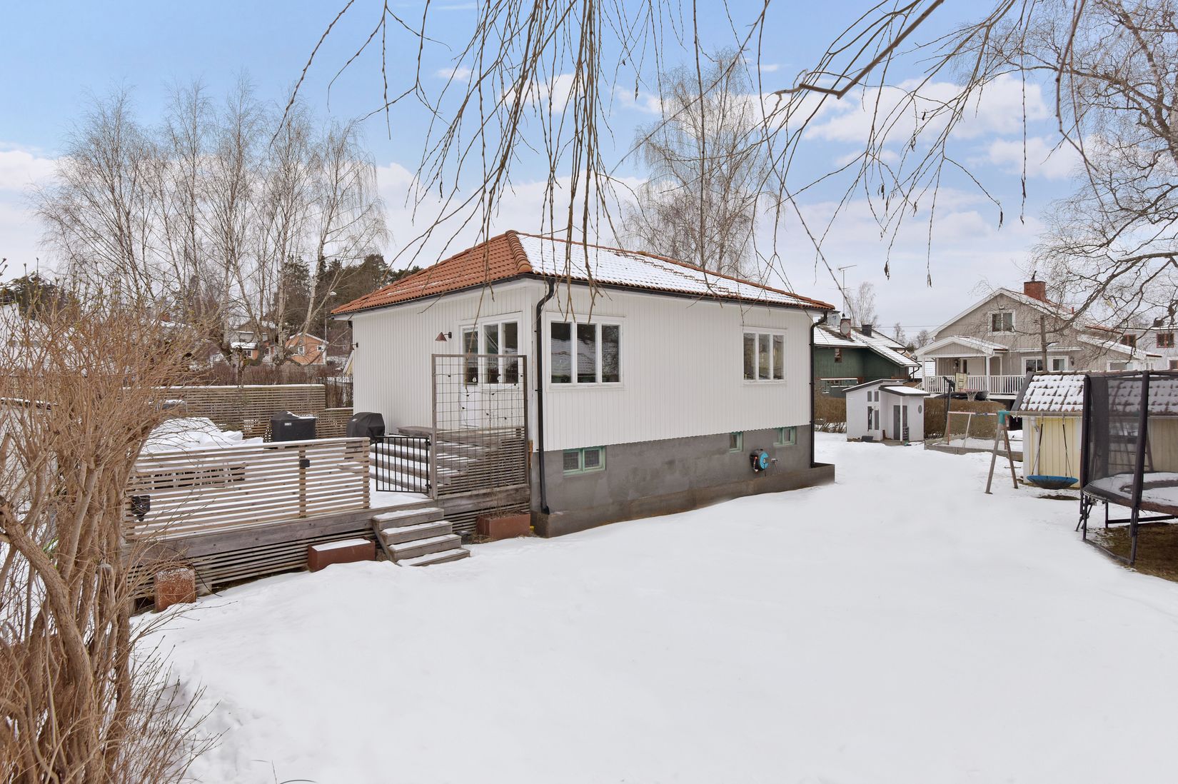 Det lilla skaftet från den lugna villagatan kommer uppskattas av såväl barnfamilj som av parfamilj, i den uppvuxna villaträdgården och på den generösa terrassen njuter man av avstressande lugn.