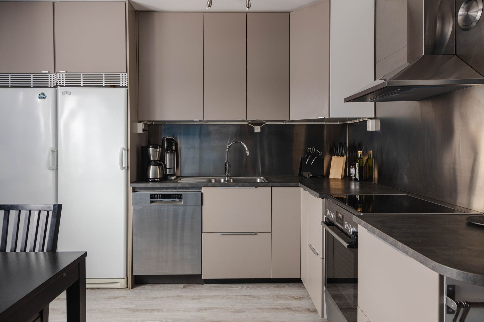 Bostaden har genomgående fina ytskikt och en funktionell planlösning med generösa rum. Köket är modernt och praktiskt utformat med goda arbetsytor och plats för matbord. Vardagsrummet är rymligt och lätt att möblera med breda ytor som skapar en luftig känsla och ger gott om utrymme för både umgänge och avkoppling.