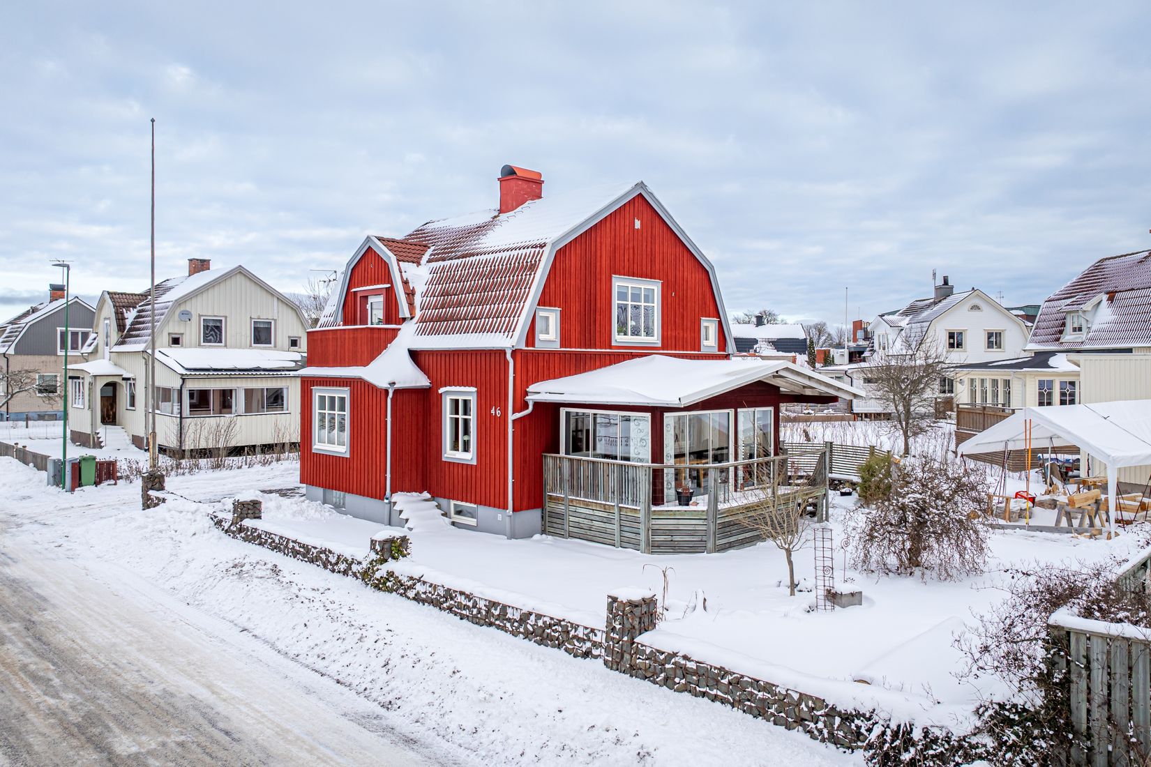 Varmt välkommen till Trädgårdsgatan 46 i centrala Tidaholm! Nu saluförs ett välplanerat, renoverat, charmigt, trivsamt och energieffektivt 1 1/2-planshus med källare byggt 1936. Många stora och bra renoveringar är gjorda såsom 2024 fasadmålning, 2021 installation solpaneler/solceller, 2017 renovering av kök med köksö, Marbodal, 2017-2020 byte av elsystem, 2007 tillbyggnation inglasat uterum, 2007 nybyggnation tvättstuga och relaxavdelning, källarplan, 2005 nybyggnation carport med förråd, 2004 installation bergvärme, 2004 renovering av badrum, entréplan, 1999 Fasadbyte och tilläggsisolering, 1995 renovering av dränering, platonmatta och 1989 takbyte yttertak. Positiva egenskaper såsom ett välplanerat, stilrent och renoverat kök från Marbodal, vattenburet uppvärmningssystem via bergvärme, solpaneler, inglasat uterum i soligt söderläge, relaxavdelning i källarplan och stora sociala ytor. Huset om 136 kvadratmeter boarea och 68 kvadratmeter biarea fördelar sig enligt följande: entréplanet inrymmer en välplanerad entréhall med goda förvaringsmöjligheter, ett välplanerat, fräscht och helkaklat badrum, ett stort, välplanerat och renoverat kök från Marbodal med tillhörande matplats och vinkyl, ett stort och ljust vardagsrum med fint trägolv och utgång till inglasat uterum i soligt söderläge samt ett stort och ljust sovrum/kontor. Övre våningsplanet inrymmer en inre hall med ingång till sidovind/kattvind med goda förvaringsmöjligheter, två ljusa, stora och separata sovrum, varav ena har ingång till ett separat förråd med goda förvaringsmöjligheter, allrum med utgång till balkong och ett separat förrådsutrymme med goda förvaringsmöjligheter. Källarplanet inrymmer en renoverad, välplanerad och helkaklad tvättstuga, relaxavdelning innehållande bastu, dusch och toalett, förråd, pannrum/förråd och sovrum/gästrum. Exteriört finns en välplanerad trädgårdstomt om 687 kvadratmeter, inglasat uterum i soligt söderläge, carport med förråd och stor uppfart med plats för flertalet bilar. Energieffektiv och driftsäker uppvärmning via bergvärme och solpaneler. Huset har även energiklass B vilket kan ge så kallat "grönt bolån". Kontakta din bank för mer information gällande "Grönt Bolån".