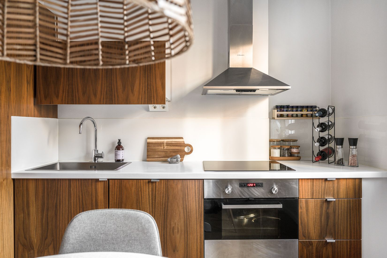 Interiören präglas av ljusa ytskikt och enhetlig ekparkett som löper genom bostaden. Under 2022 målades tak, väggar, dörrar och lister, vilket bidrar till ett omsorgsfullt och välhållet helhetsintryck. Köket är smakfullt utformat med luckor från Picky Living och har uppdaterats med nyare vitvaror under senare år. Sovrummet är lugnt placerat mot gården och har direkt access till den västvända uteplatsen – en privat oas som förlänger bostaden under årets varmare månader.