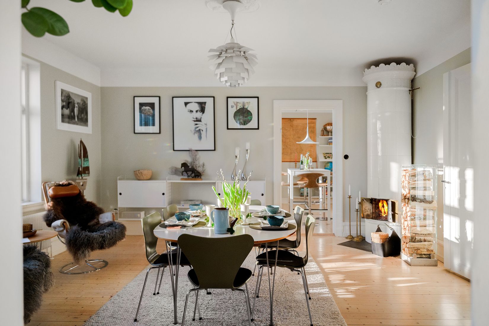 Kakelugnen värmer vintermorgnarna och braskaminen sprakar i skymningen. Punchverandan bjuder in till långsamma stunder. Det platsbyggda köket med mässingsbeslag är både vackert och funktionellt, med gott om arbetsytor och genomtänkt förvaring. Renoveringen har skett med respekt för husets själ – återbruk, ekologiska färger och noggrant utvalda materialval samspelar i en harmonisk helhet.
