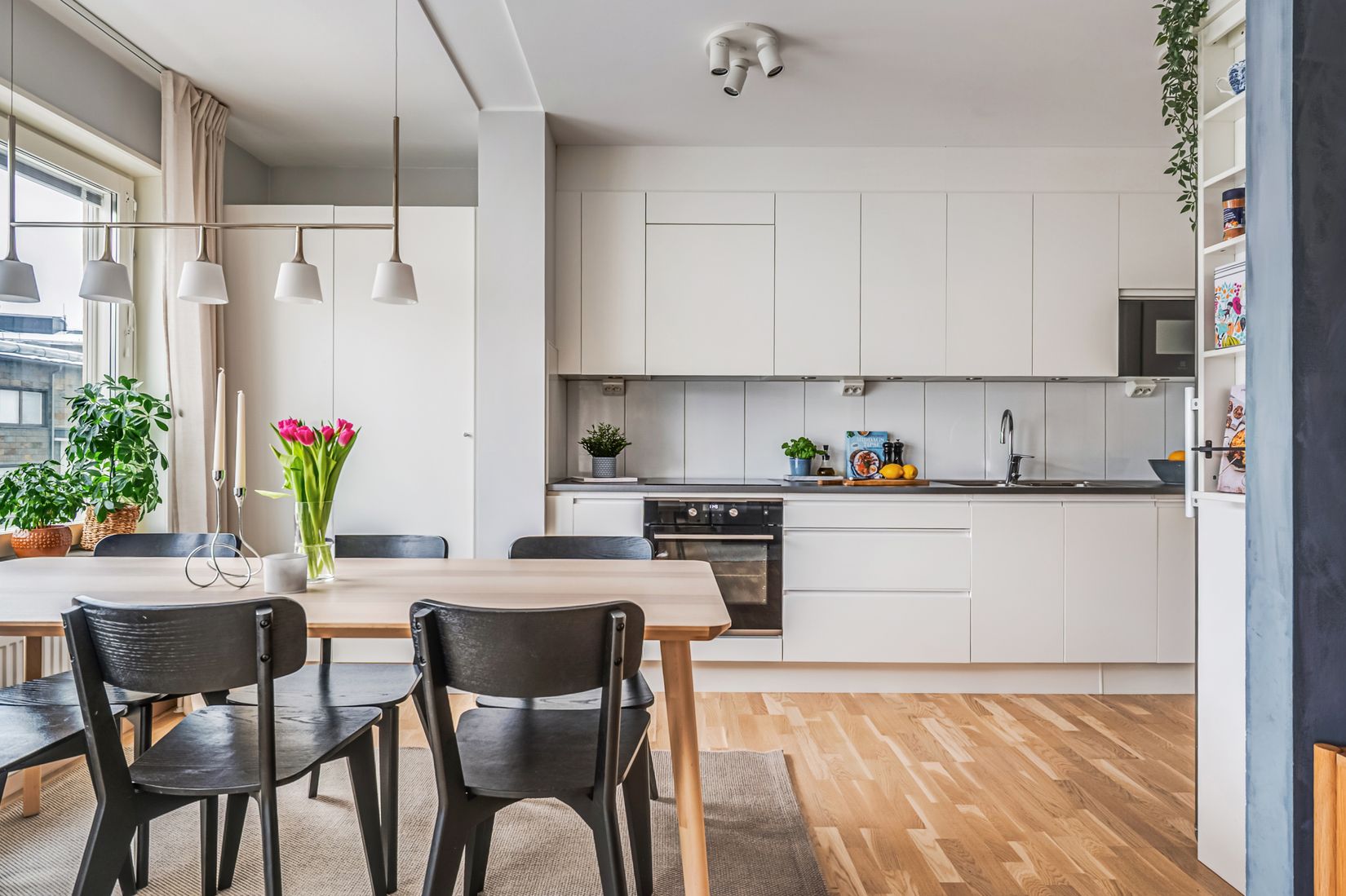 Denna lägenhet präglas av ett härligt ljusinsläpp, väldisponerade kvadratmeter samt materialval av hög klass. Genomgående stora fönster och en öppen planlösning skapar en luftig känsla och gör det enkelt att möblera efter eget tycke och behov.