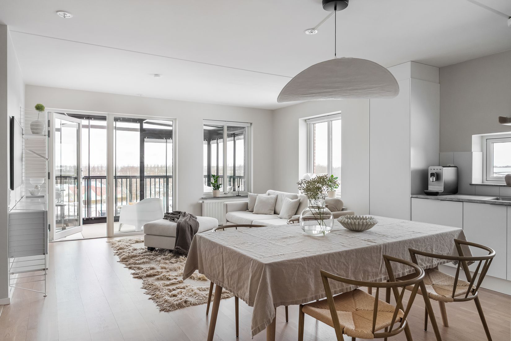 Denna välplanerade 4:a ligger belägen på en hörna med fint ljusinsläpp från de stora fönsterpartierna. Den öppna planlösningen mellan kök och vardagsrum skapar en härlig social yta som är lägenhetens hjärta. Dessutom finns tre sovrum i bra storlek. Ett fullutrustat badrum med tvättmöjligheter och därtill gästtoalett. Lägenheten bjuder genomgående på fina materialval med 3-stavs parkettgolv, släta målade väggar och stilrent kök från Marbodal. Den härliga inglasad västerbalkongen är på hela 8 kvadrat och förlänger bostaden sociala ytor, kan nyttjas från tidig vår till sen höst. Från lägenheten har man en fin utsikt över områdets övriga bebyggelse och närbelägna lekplats.