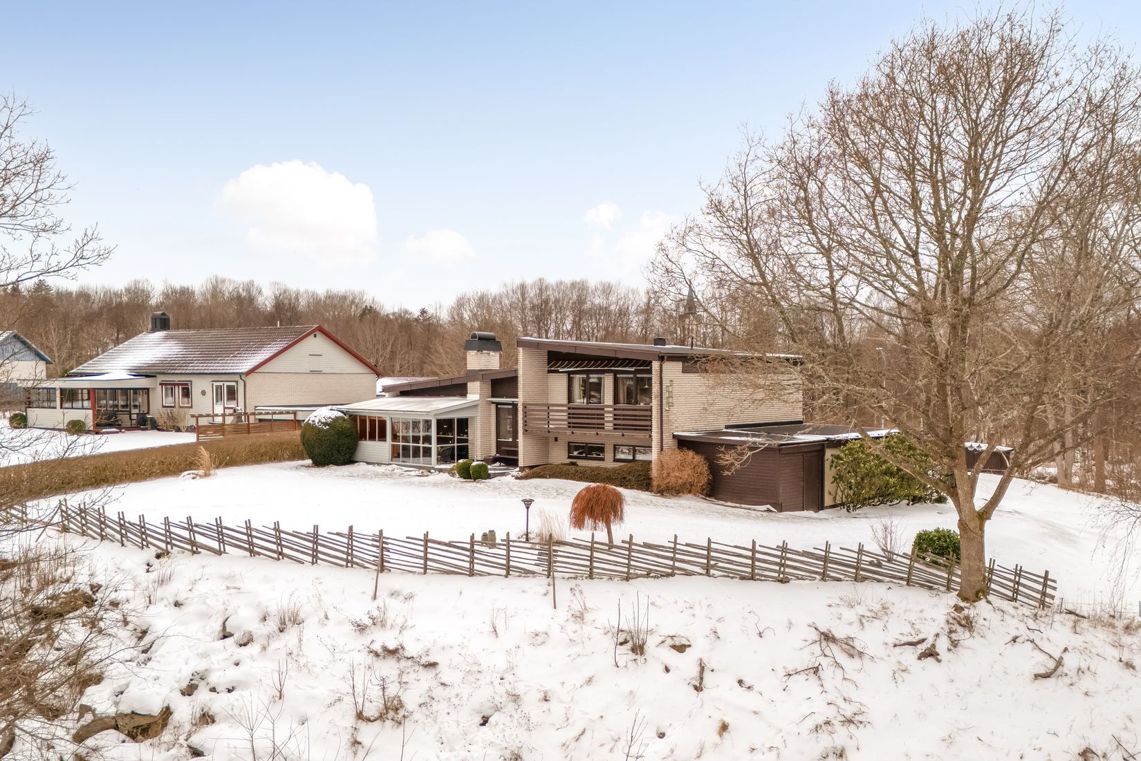 Längst ner på en stillsam återvändsgata i Kyrkhult, med Fornebodasjön som glittrande granne, väntar ett hem som rymmer både liv och drömmar. På Ängsvägen 18 breder detta generösa suterränghus om ca 240 kvadratmeter ut sig – en plats där naturen känns ständigt närvarande och där varje årstid får sin egen inramning.