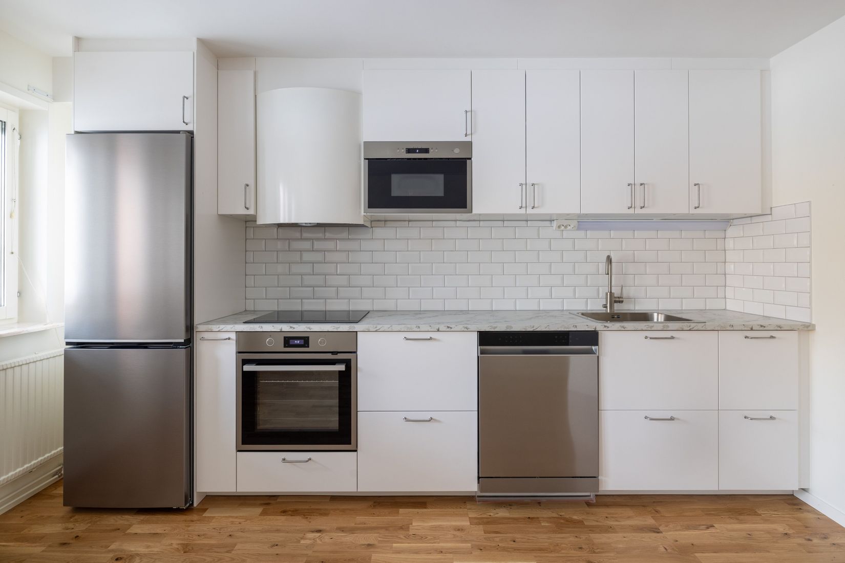 Perfekt lägenhet för den som önskar något totalrenoverat! Stor och luftig trea i markplan om totalt 86,4 kvm fördelat på tre rum och kök, varav ett vardagsrum samt två sovrum. Väldisponerad lägenhet med breda dörröppningar och bra rumsstorlekar. Föreningen har en fin och privat innergård som renoverades 2016/2017, inramad av gallergrindar, som gör platsen till en oas mitt i staden. Egen ingång. Stadsnät. Då föreningen har mycket god ekonomi så brukar det erbjudas en avgiftsfri månad i december.