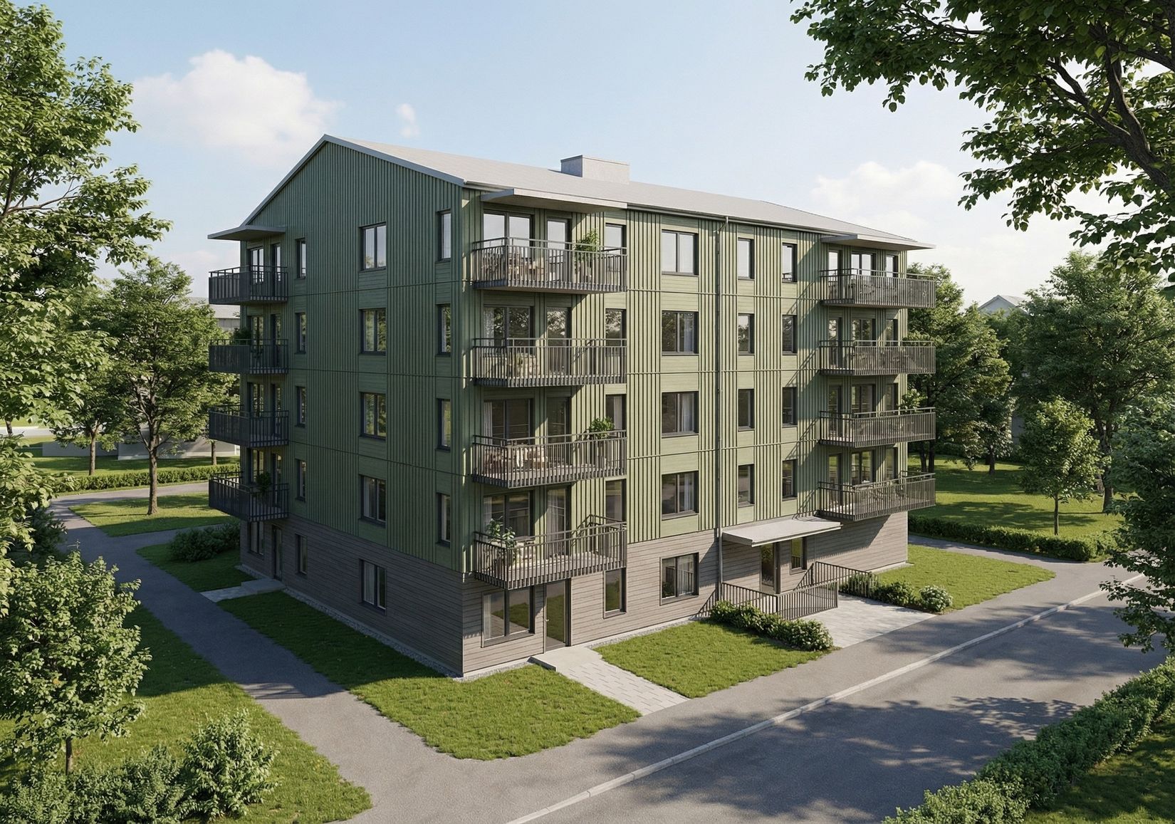 Praktiska bekvämligheter är självklara. Samtliga lägenheter har förråd i bottenplan och tillhörande parkeringsplats, utöver fyra besöksparkeringar samt en HCP-plats. Byggnaden uppförs med betongstomme och hög energieffektivitet, vilket ger god ljudisolering, lågt underhållsbehov och en trygg, hållbar investering över tid. Hiss finns i huset och fiber installeras till samtliga lägenheter. Byggstart är planerad till 2026.