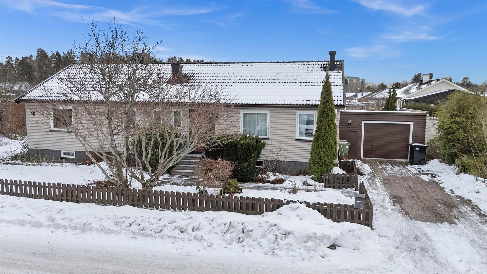 Trädgården är lummig och insynsskyddad med plana gräsytor för lek och aktivitet. Garage finns i anslutning till huset.