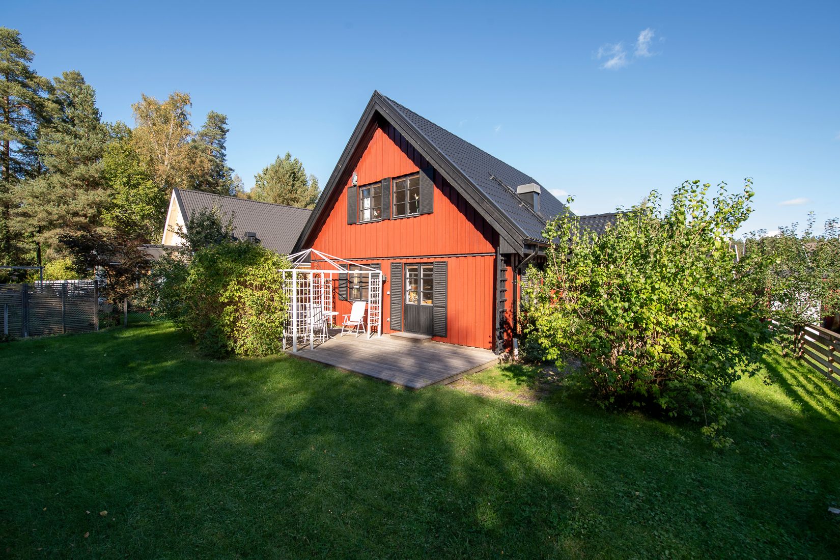 Huset erbjuder generösa ytor för hela familjen, ett praktiskt garage och en lummig trädgård med gott om plats för lek, odling och umgänge. På baksidan finns en rymlig altan i soligt läge – perfekt för avkoppling och sociala stunder.