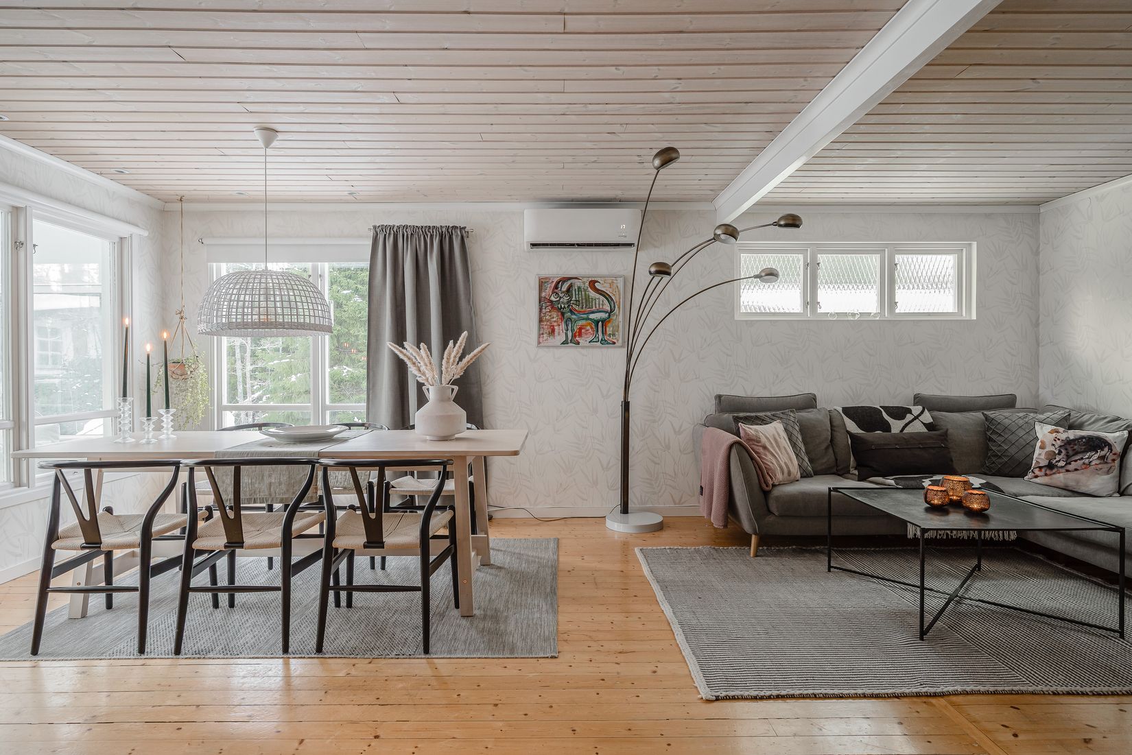 Det rymliga vardagsrummet erbjuder en mysig öppen spis och plats för både stor soffgrupp och matplats. Härifrån nås bostadens senaste tillskott – det ljusa, vidbyggda uterummet som blir en naturlig förlängning av hemmet och en perfekt plats att samla familj och vänner.