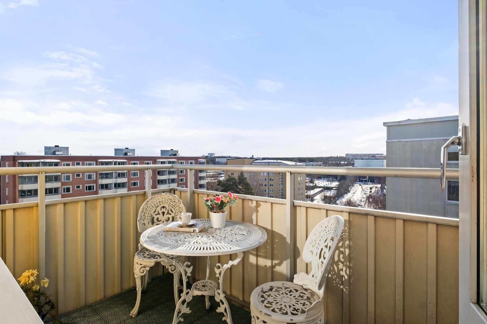 Läget är svårslaget med Tyresö Centrum på kort gångavstånd med butiker, restauranger, gym och all tänkbar service. Busshållplats finns i direkt närhet med smidig kommunikation mot Gullmarsplan och Stockholm city, samtidigt som natur och grönområden finns runt knuten för promenader och friluftsliv.