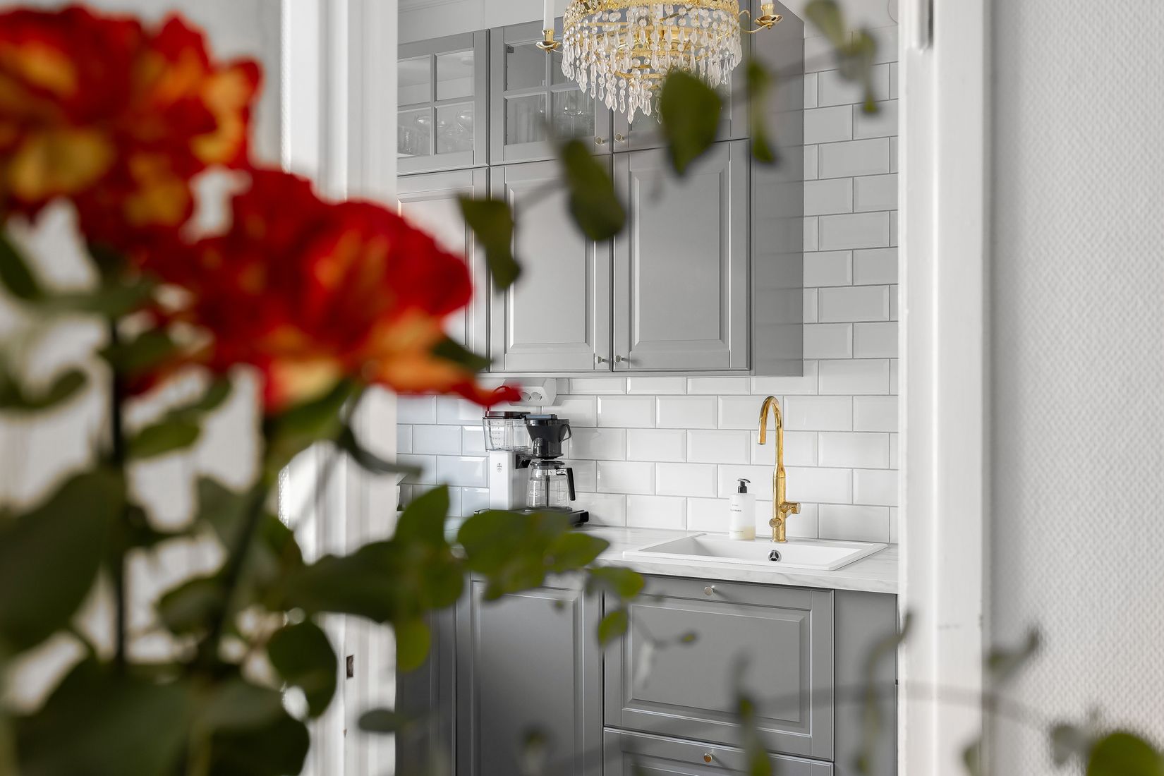 Köket är praktiskt planerat med goda arbetsytor och diskmaskin. Intill ligger sovrummet i lugnt och avskilt läge. Badrummet är smakfullt och fräscht, utrustat med ett trivsamt vädringsfönster. Det ljusa vardagsrummet erbjuder generösa ytor för både en bekväm soffgrupp och en rymlig matplats för dig och dina gäster. Härifrån når du den underbara balkongen i soligt söderläge, vänd mot den grönskande innergården där en väldoftande syrén sätter extra charm. Hallen välkomnar med säkerhetsdörr och en rymlig klädkammare som erbjuder gott om förvaring.