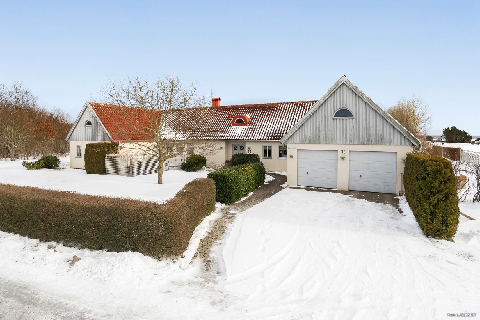 På Norrekås/Örnahusen strax söder om Skillinge fiskeläge har du nu möjlighet att bli ny ägare till den generösa 1-plansvillan byggd i U-form 2004 med tillhörande mark. Förutom villan som är praktiskt uppdelad i två separata boende har man anlagd pool, orangeri, dubbelgarage/verkstad samt den stora odlingsbara marken att tillgå. Ägarparet har skapat sig en drömbostad samt gästlägenhet, enkelt lättskött och allt i princip i 1-plan. Den öppna planlösning med öppet upp i nock ger en sakral känsla, så mäktig! Tre sovrum, två duschrum, kök/matplats allrum i öppen planlösning samt tvättstuga. Den separata bostaden om ca 108 kvm har två sovrum, kök/matplats/allrum och duschrum/toalett samt två sovloft/allrum/kontor på vardera sida. Villan ligger utmed mindre grusväg, bra promenadområden antingen mot Skillinge utmed havet alt. i skogsmiljö eller mot Borrbystrand och vidare söderut utmed kusten. Välkommen att boka visning, adressen är Hävdavägen 35.