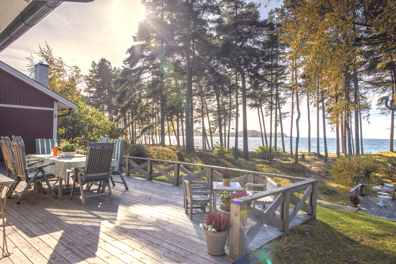 Trädgården bjuder på en härlig blandning av gräsytor, uteplatser och naturtomt med blåbärsris. Gäststugan blir ett perfekt komplement för övernattande gäster att få sitt eget utrymme och altandäck utanför. Uthusbyggnaden bidrar till förvaring av trädgårdsredskap och cyklar.