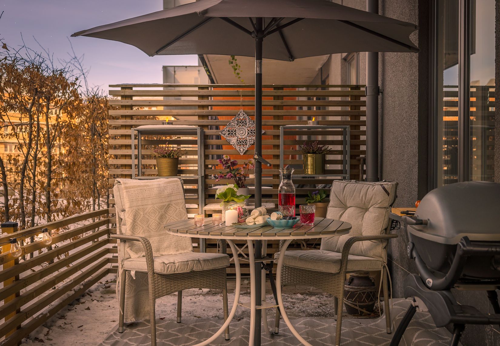 Med en stor terrass, radhuskänsla och en genomtänkt planlösning som nyttjar varje kvadratmeter erbjuds här ett hem som kombinerar funktionalitet med trivsel. Terrassen fungerar som en naturlig förlängning av bostaden och skapar ytterligare ett rum under stora delar av året, med plats för både loungedel, matplats och grill. Den insynsskyddande häcken och det nya staketet med grind ger en privat och trygg miljö, samtidigt som utsikten mot Sofia kyrkan och den intilliggande gräsytan förstärker känslan av ett lugnt och grönt läge.