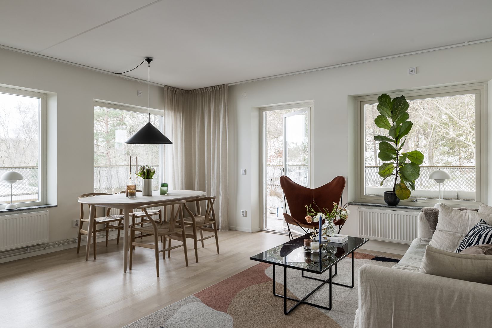 Välkommen till Hedtångsvägen 31B – en genomtänkt och inbjudande trea där ljuset får ta plats och planlösningen skapar ett naturligt flöde genom hela hemmet. Här bor du högt upp i huset med en fri känsla utanför fönstren och utsikt över den grönskande skogen som ger ett lugnt och harmoniskt intryck.
