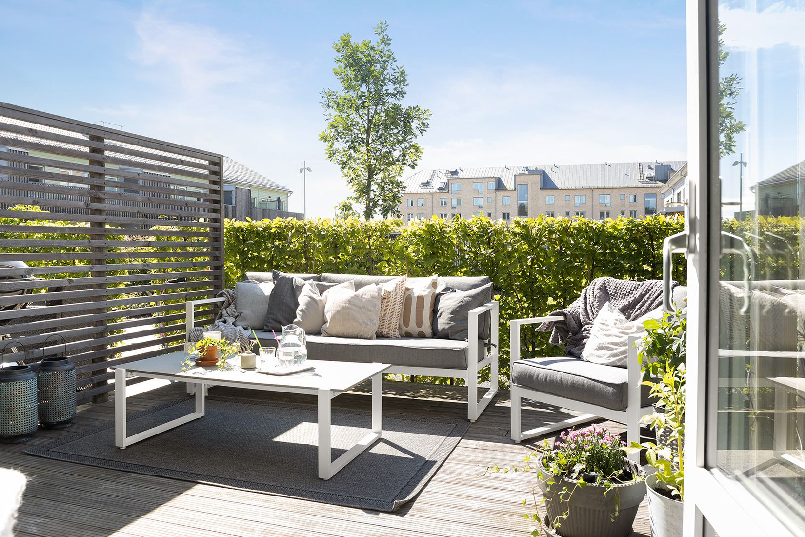 Badrummet är smakfullt inrett och utrustat med kombinerad tvättmaskin och torktumlare – ett bekvämt tillskott i vardagen. Pricken över i:et är den rymliga uteplatsen i bästa söderläge, där ni kan njuta av solen från förmiddag till kväll med fri vy över innergården. I anslutning till uteplatsen finns dessutom ett praktiskt kallförråd som ger extra förvaringsmöjligheter.