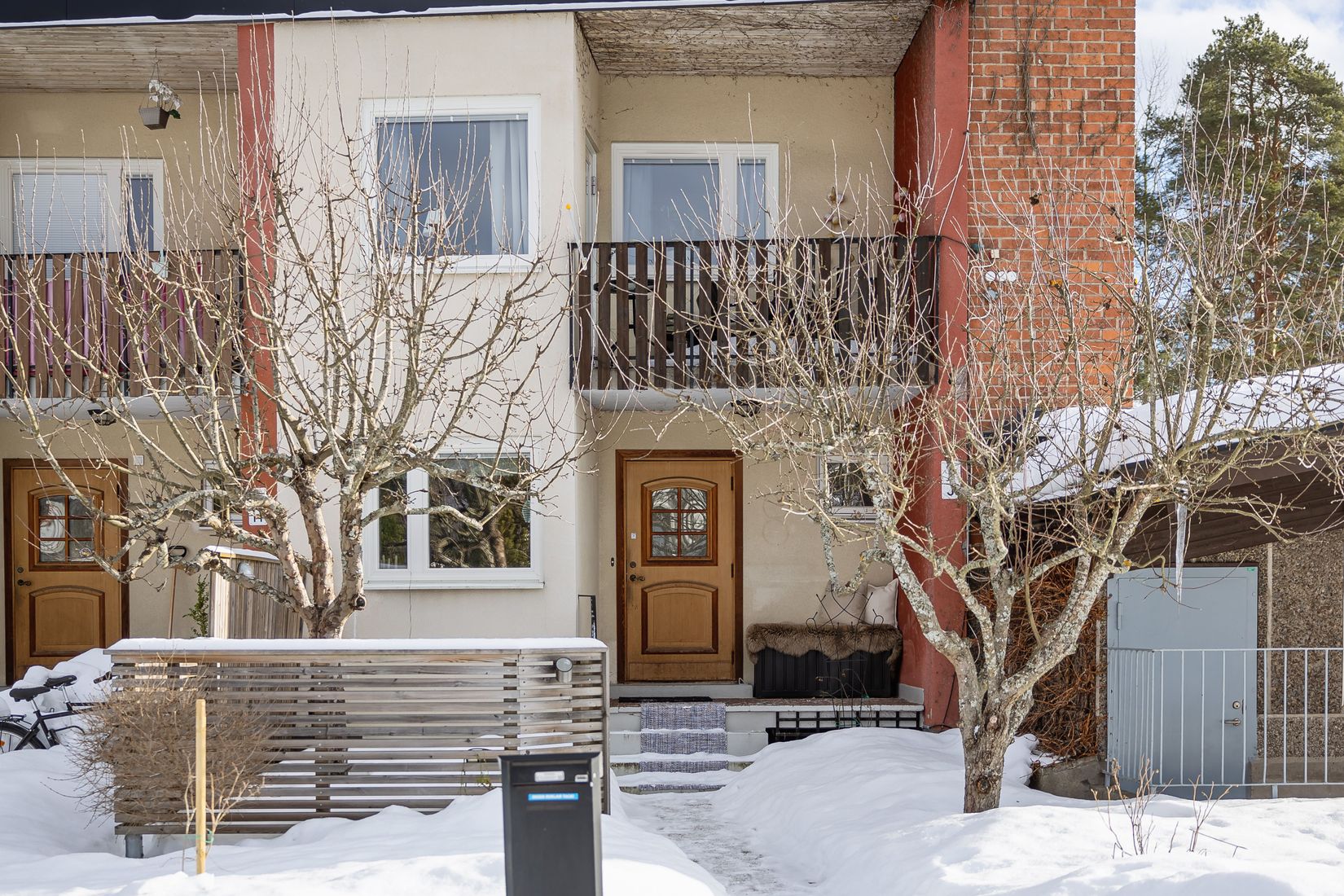 Utomhusmiljön är något alldeles extra med dubbla uteplatser och balkong som ger sol från morgon till kväll. Den insynsskyddade trädgårdstomten på baksidan vetter mot grönområde med morgonsol medan framsidan erbjuder en trivsam uteplats i markplan och balkong med kvällssol.