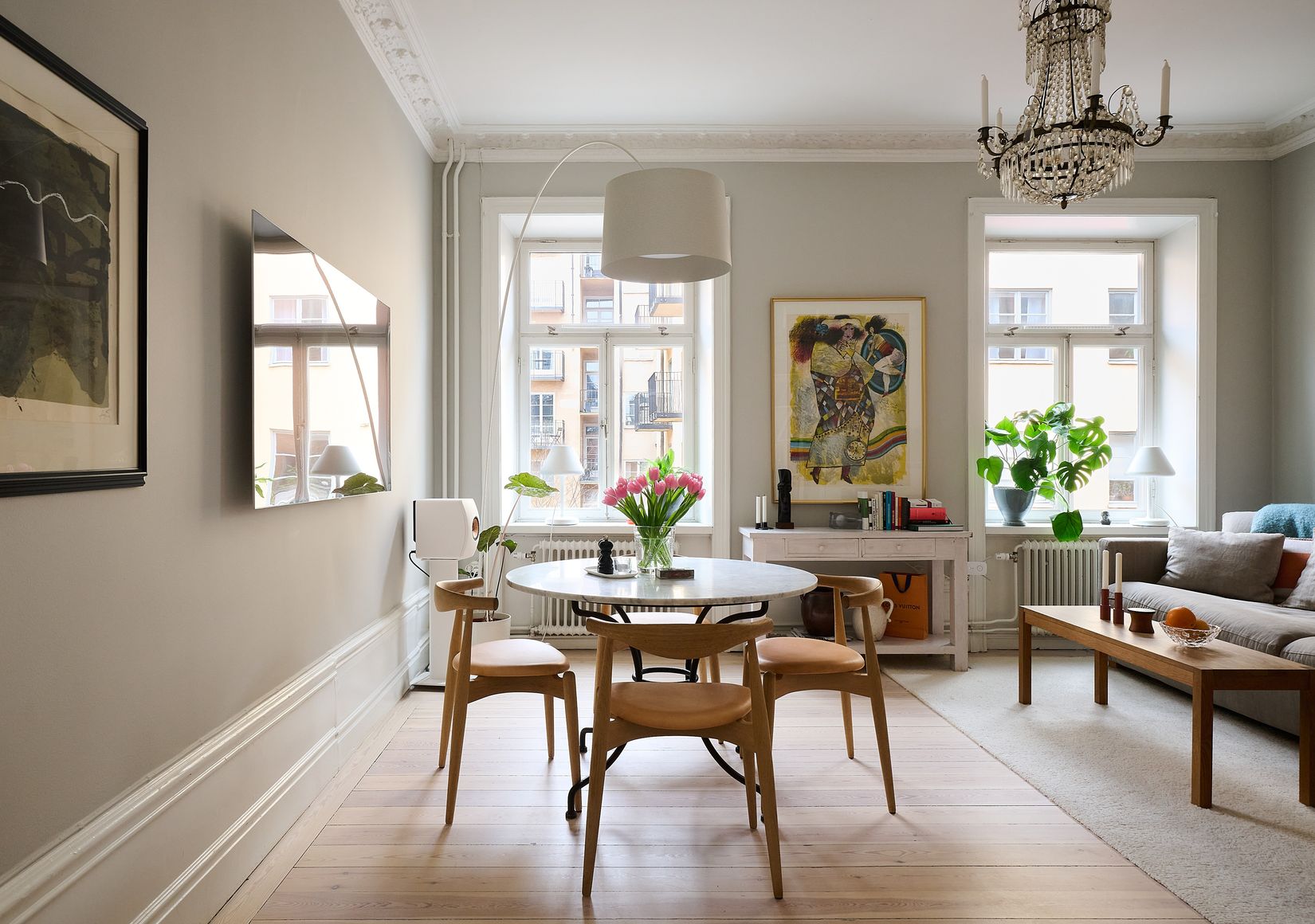 I ett charmigt hus från 1890, högt upp på Mariaberget, väntar en genomgående trea som upptar ett eget våningsplan. Här samspelar ljus, rymd och välbevarade detaljer på ett sätt som känns både självklart och omsorgsfullt. Generösa fönsterpartier och en väl tilltagen takhöjd skapar en luftig atmosfär, medan planlösningen binder samman rummen på ett naturligt sätt. Redan i hallen möts du av en välkomnande solfjäderform som elegant fördelar bostadens olika delar.