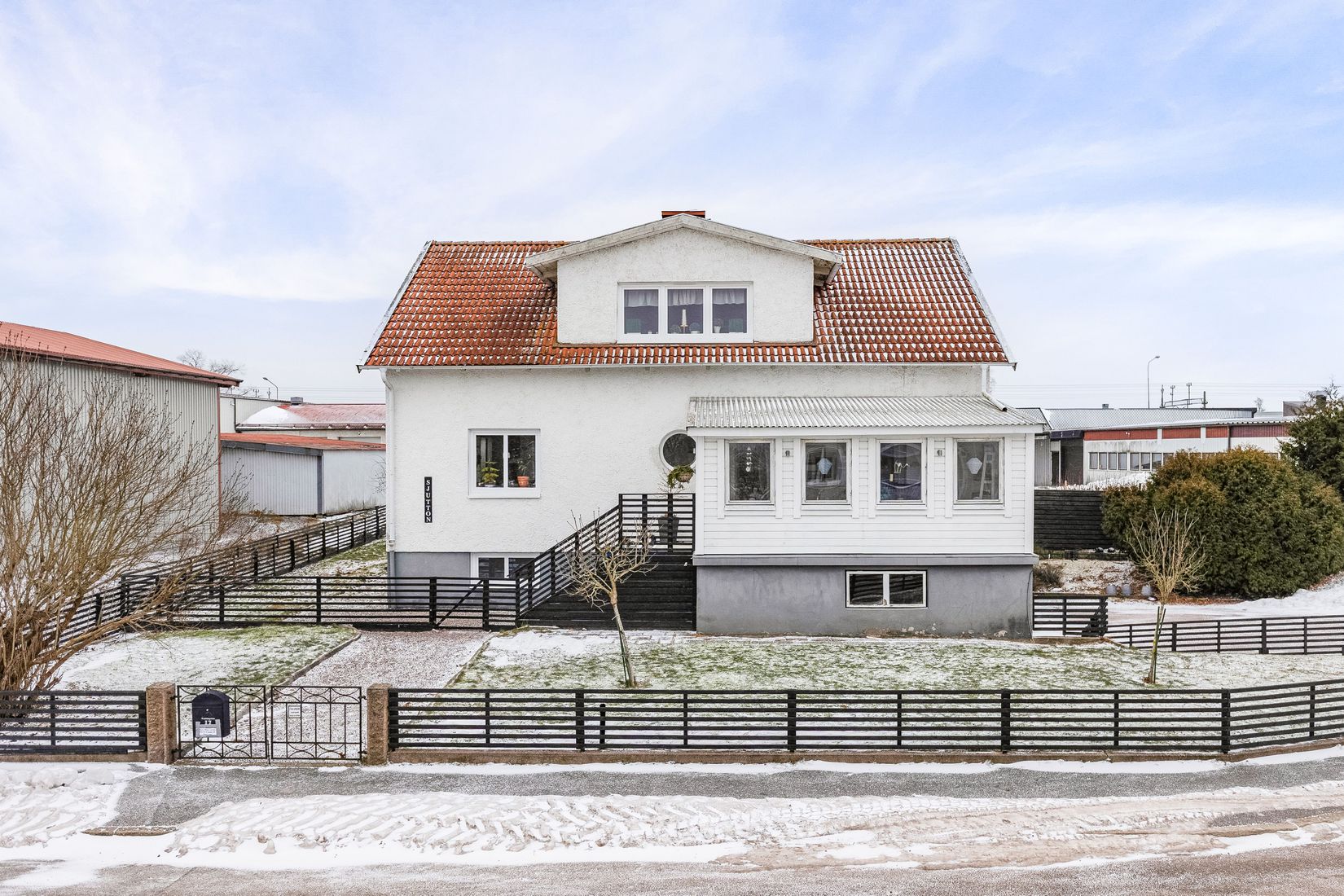 Välkommen till ett trivsamt och välhållet hem med gott om plats för hela familjen. Den putsade fasaden ger huset ett tidlöst och gediget intryck, och invändigt erbjuds generösa sällskapsytor samt flera sovrum som passar såväl vardagens behov som större tillställningar.