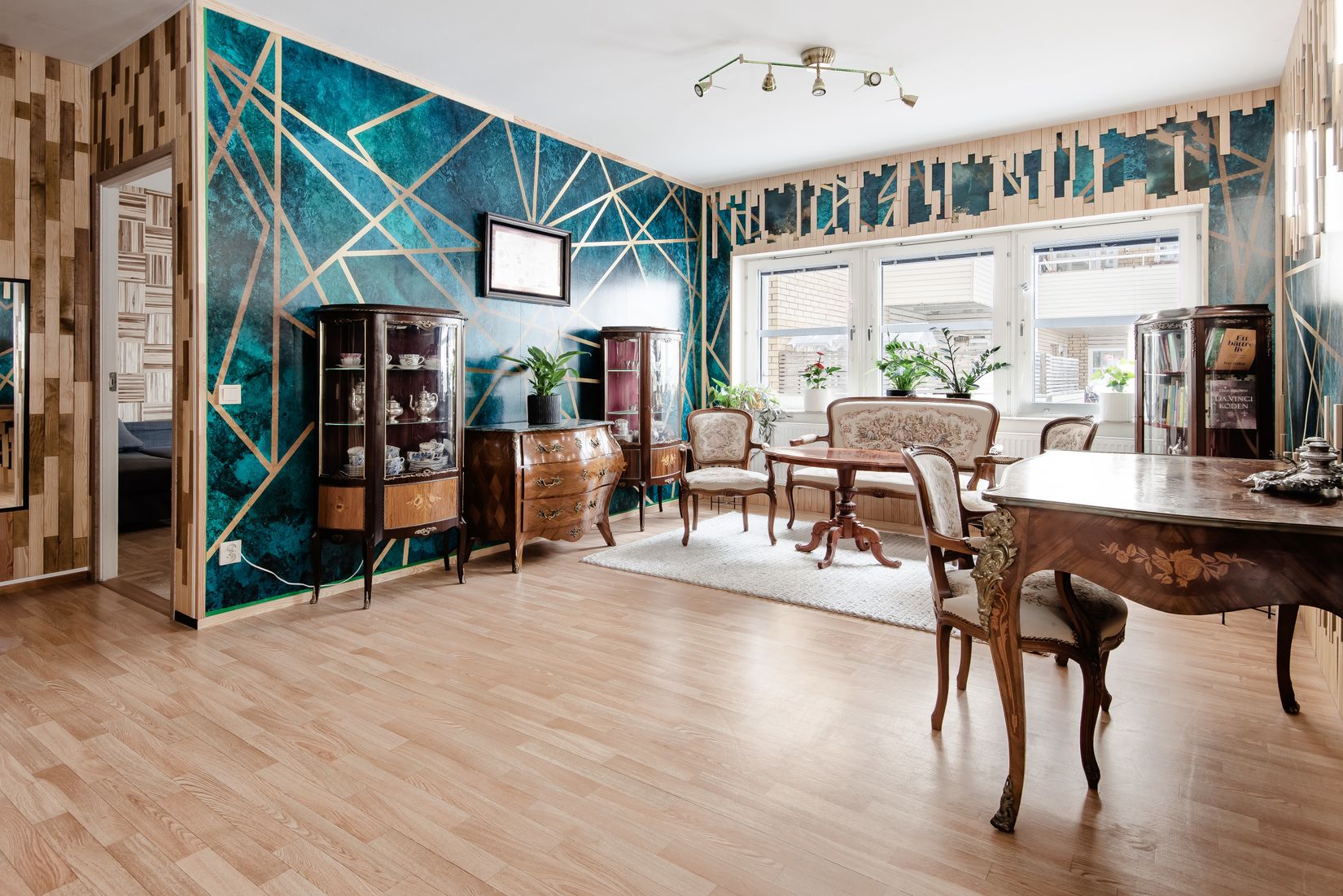 Unik och personlig bostad med karaktär utöver det vanliga. Träpaneler och genomtänkta materialval skapar en varm känsla. Den sociala planlösningen med halvöppet samband mellan kök och vardagsrum ger fina umgängesytor. Tre bra sovrum och två badrum erbjuder funktion och flexibilitet. Ljusa fönsterpartier, generösa ytor och utgång till uteplats bidrar till ett trivsamt och välplanerat hem.