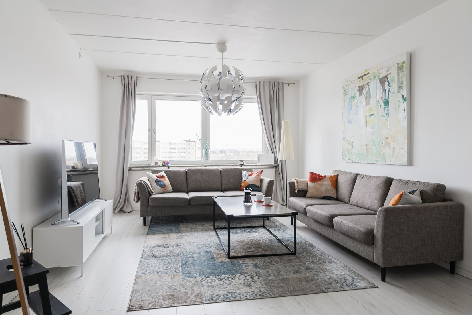 Kök och vardagsrum utgör hemmets naturliga samlingspunkt, en öppen och social yta där familj och vänner gärna möts. Från vardagsrummet möts du av en fri och vidsträckt utsikt över Hyllie, utan närliggande insyn, vilket skapar en härlig känsla av rymd och ljus. Det höga läget förstärker den luftiga atmosfären och ger ett boende med både öppenhet och integritet. Lägenheten är utrustad med alla bekvämligheter för en smidig vardag såsom tvättmaskin, torktumlare och diskmaskin, samt generösa rum.