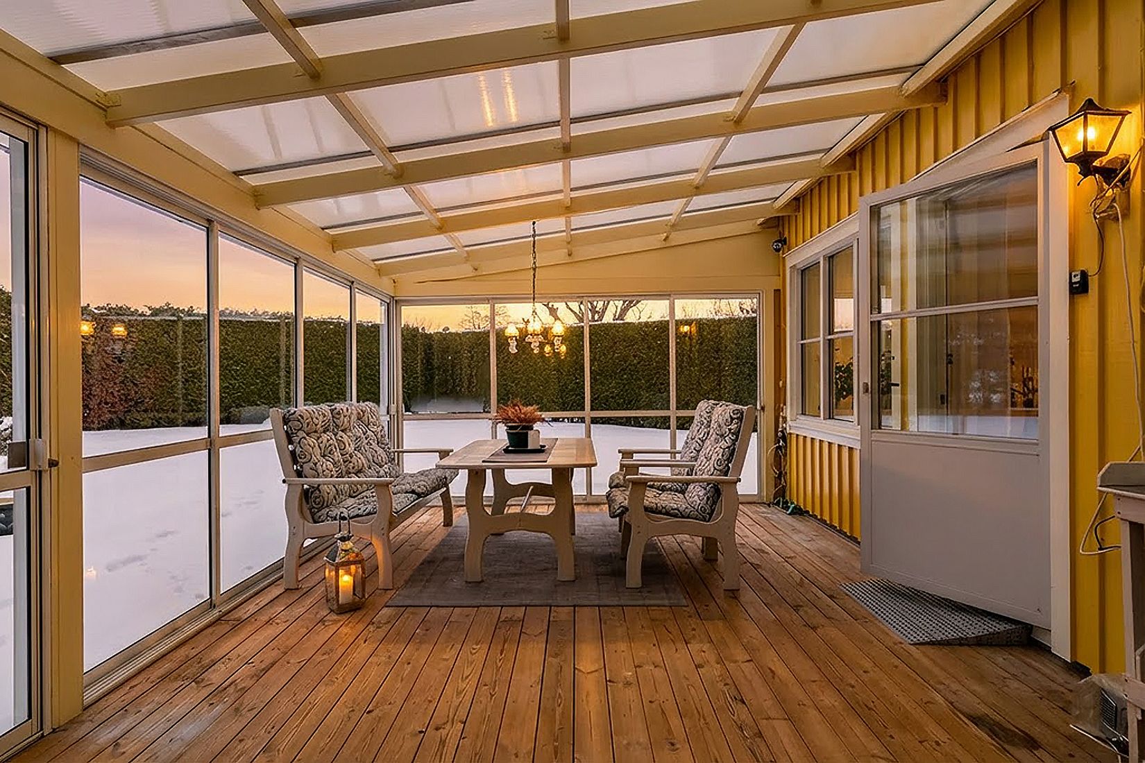 Den stora baksidan öppnar upp mot en inglasad altan med skjutpartier, där gränsen mellan ute och inne suddas och ljuset flödar fritt. Här kan våren och sommaren levas i fulla drag, från morgonens första solstrålar till kvällens mjuka skymning. Den lummiga, insynsskyddade trädgården omfamnar platsen och erbjuder rofylld avkoppling, lekfulla stunder och egna små odlingsäventyr. Kvarteret är levande med många barnfamiljer och skapar en varm och trivsam atmosfär.