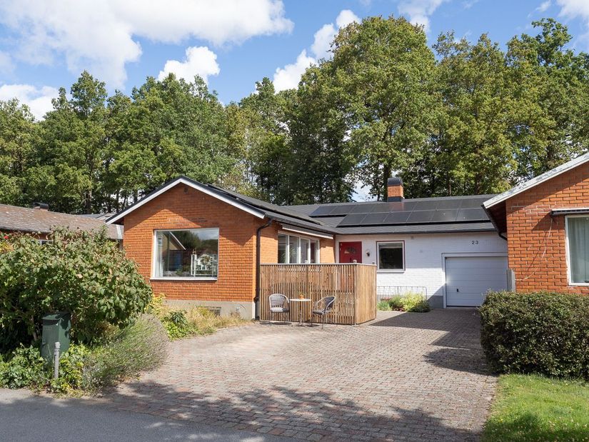 Huset är löpande väl underhållet med bland annat nyare tak, 3-glasfönster och energieffektiv luft/vatten-värmepump i kombination med solceller – en investering som ger låg driftkostnad och ett mer hållbart boende.