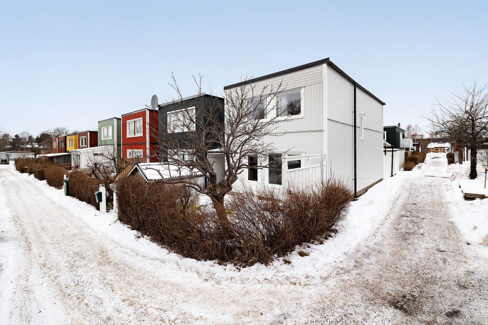 Välkommen till detta tvåplans kedjehus med fyra sovrum på övre plan. Nytt kök från 2025. Två badrum varav det på entréplan är renoverat 2025. Trädäckad altan samt gräsmatta på baksidan med eftermiddag och kvällssol. På framsidan är det morgonsol samt sol mitt på dagen. Garage i länga ingår.